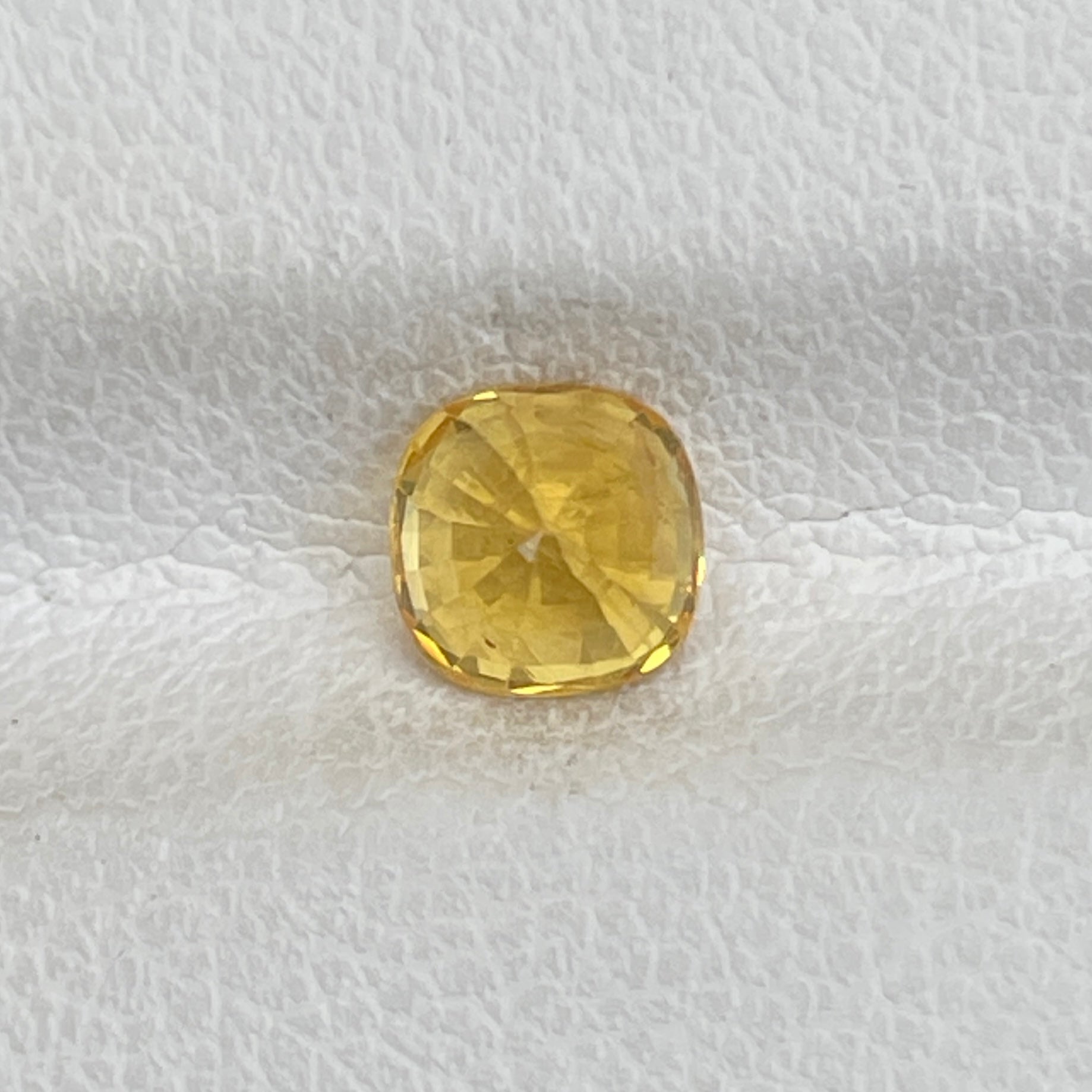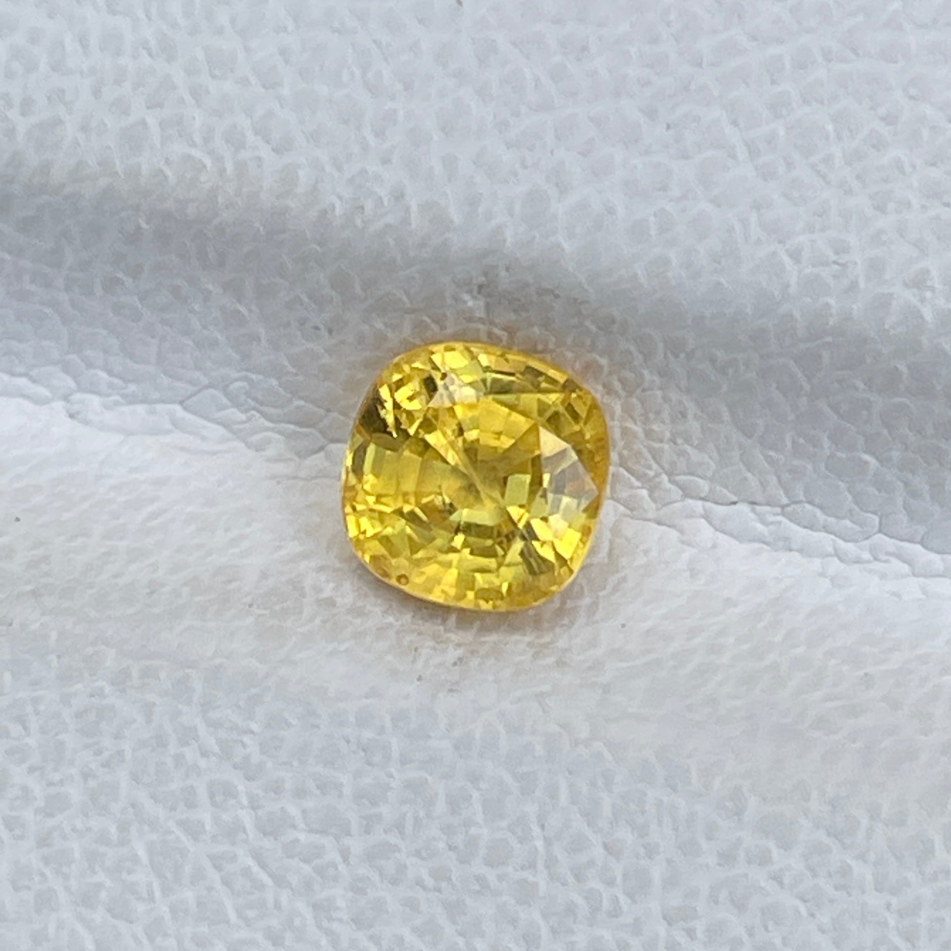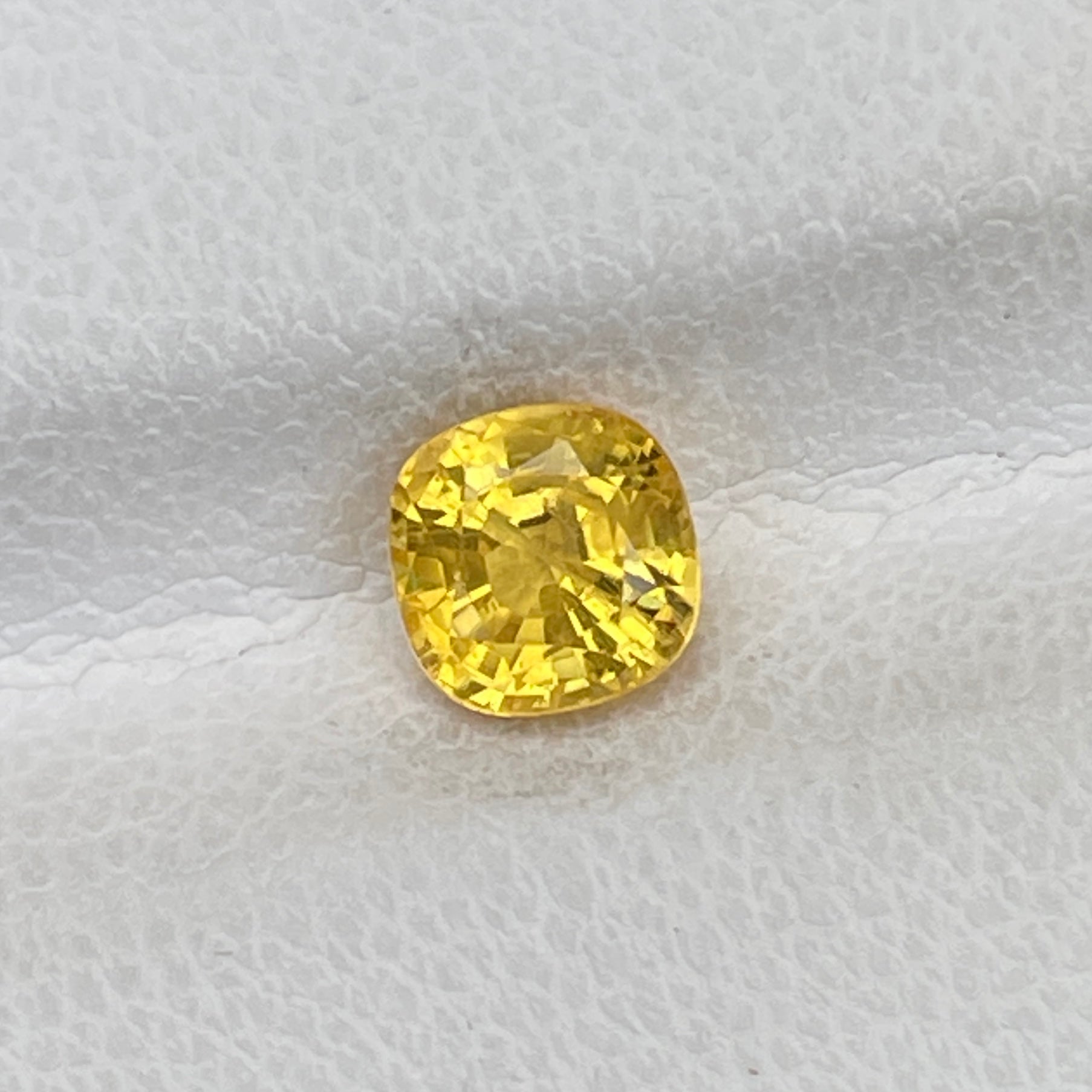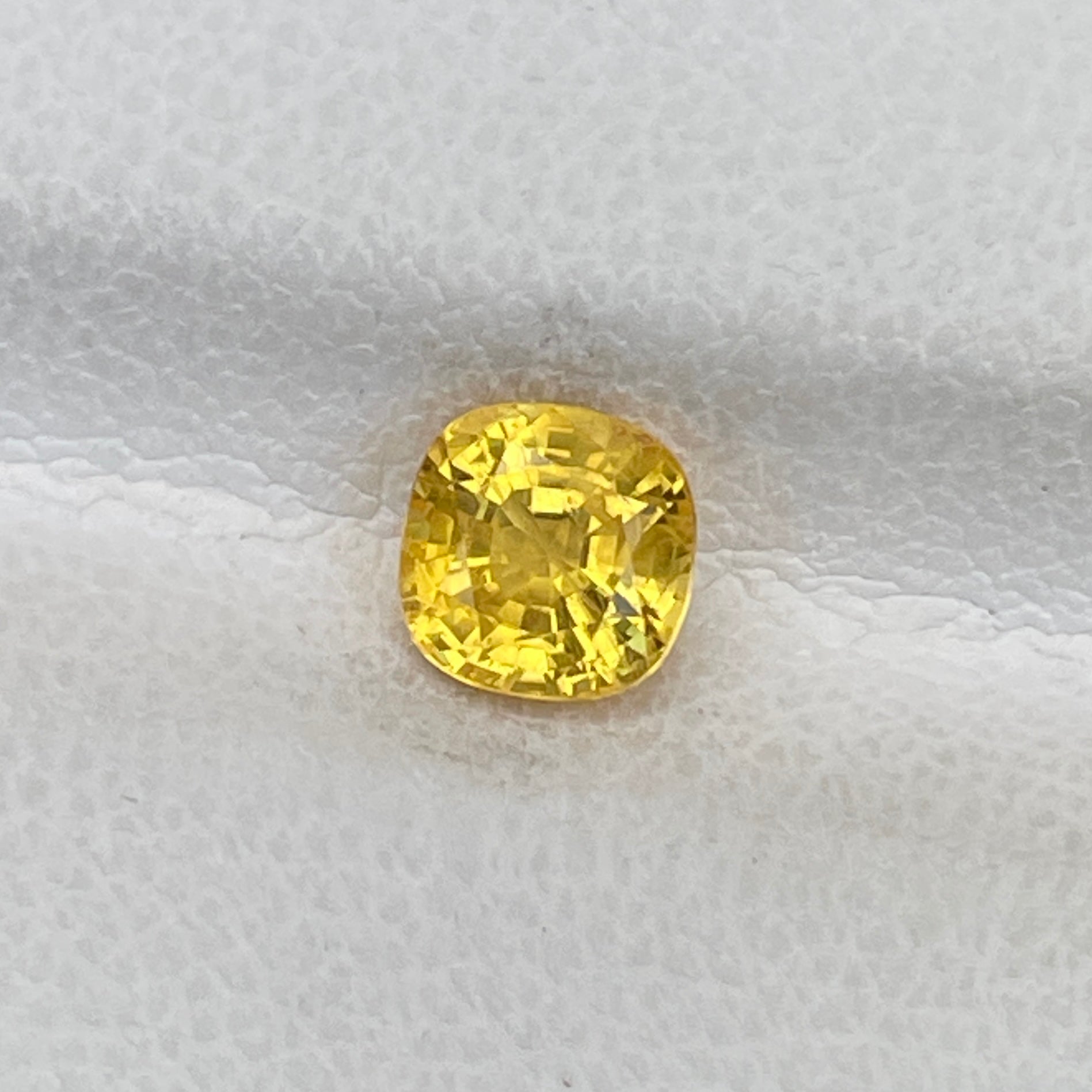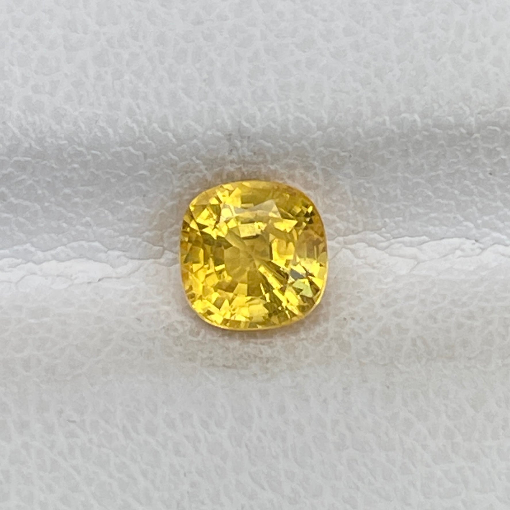 A radiant square cushion-cut yellow sapphire, glowing with a vibrant golden hue and exceptional clarity.