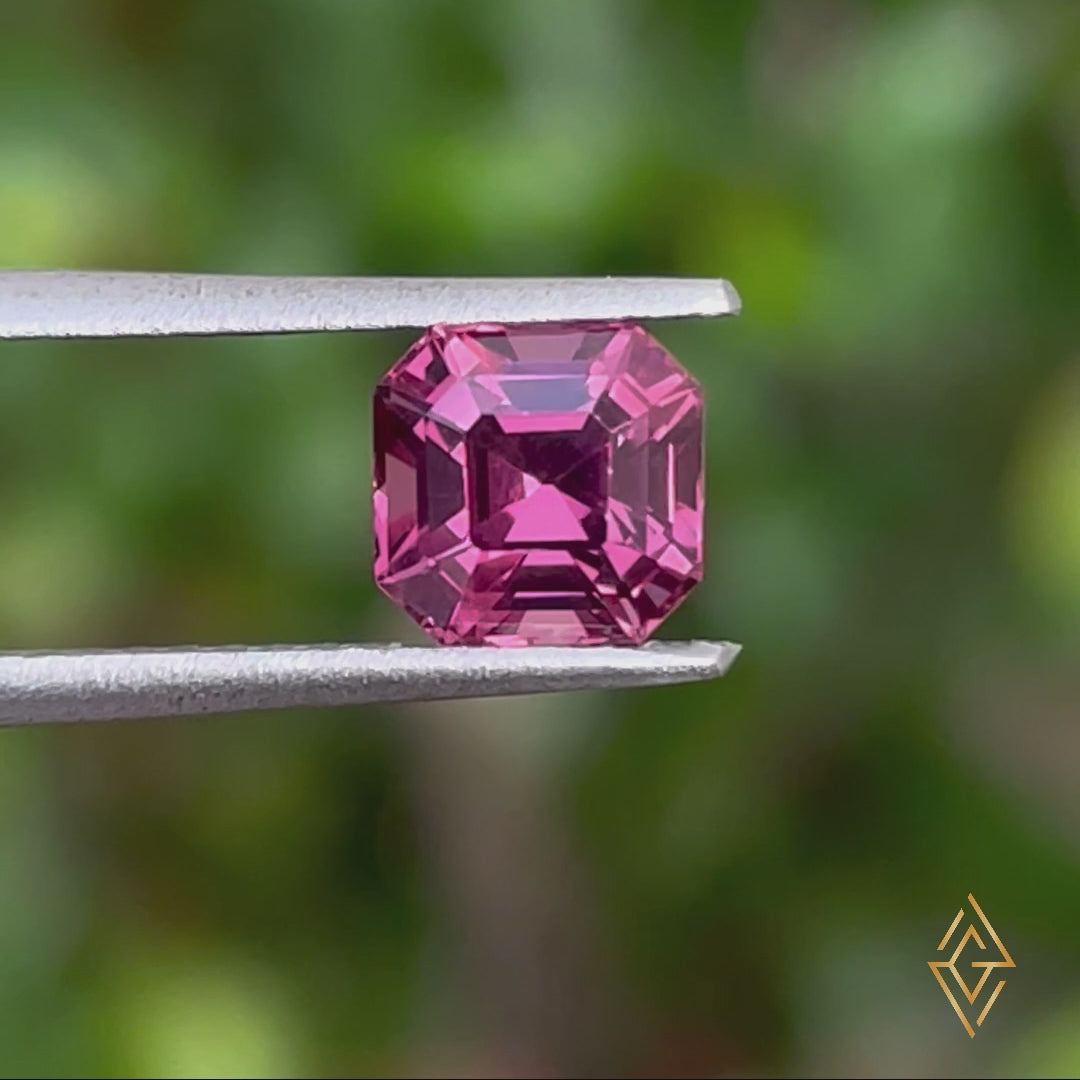 A beautiful asscher-cut Spinel from Madagascar, displaying a vibrant pink color with sparkling luster. This untreated gem features excellent VS-eye-clean clarity, making it an exceptional choice for any fine jewelry collection.