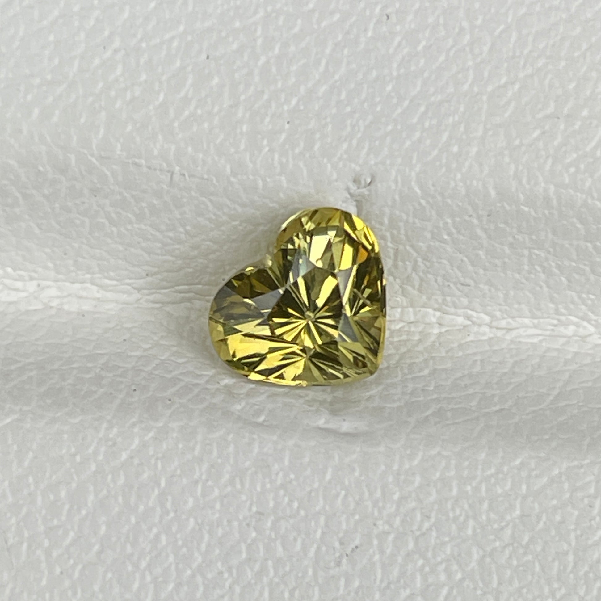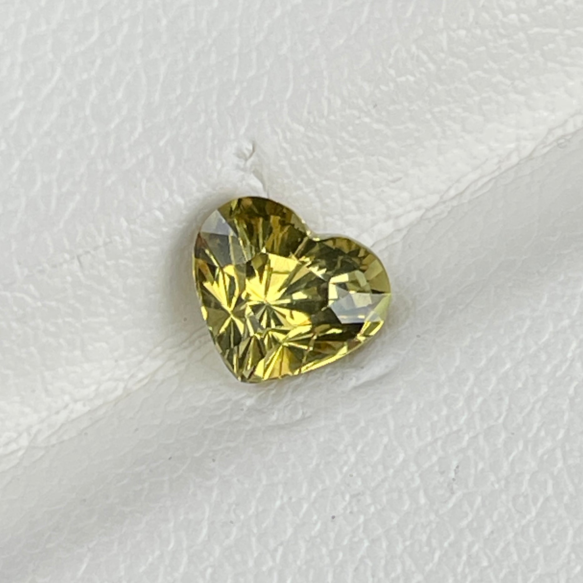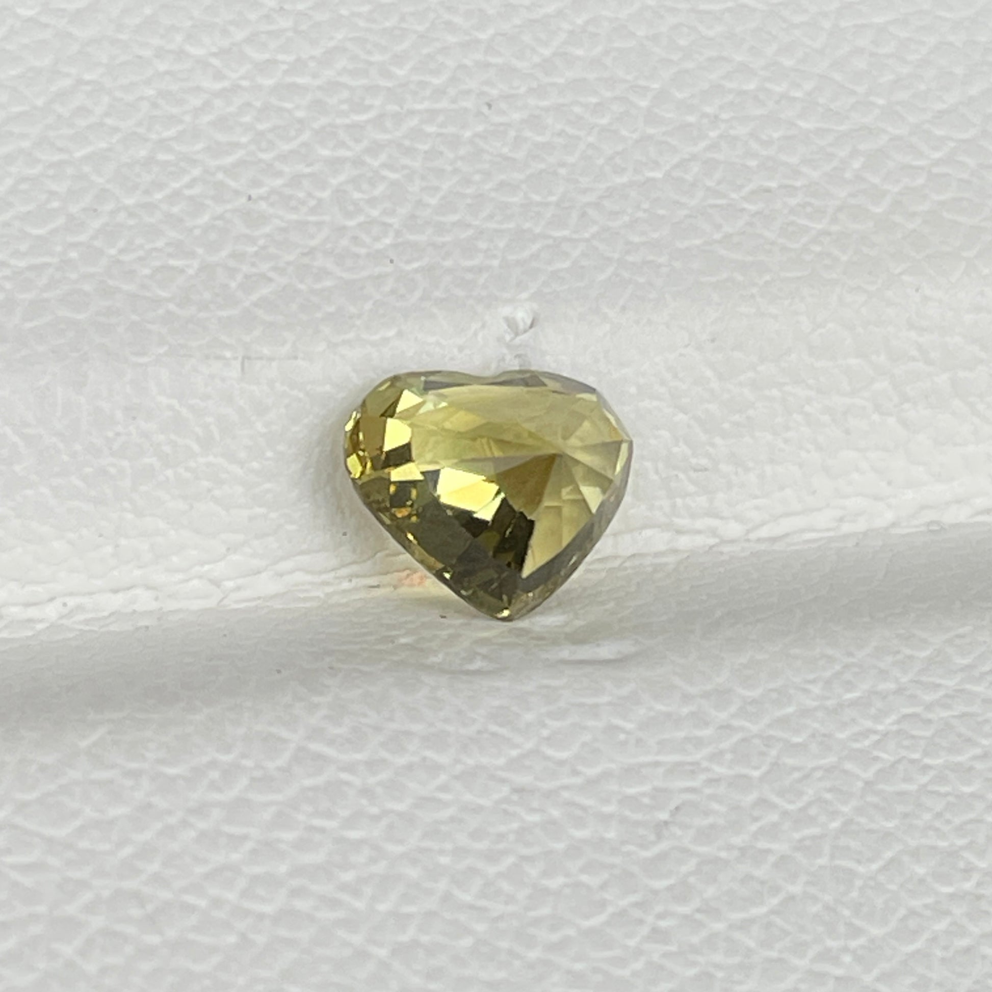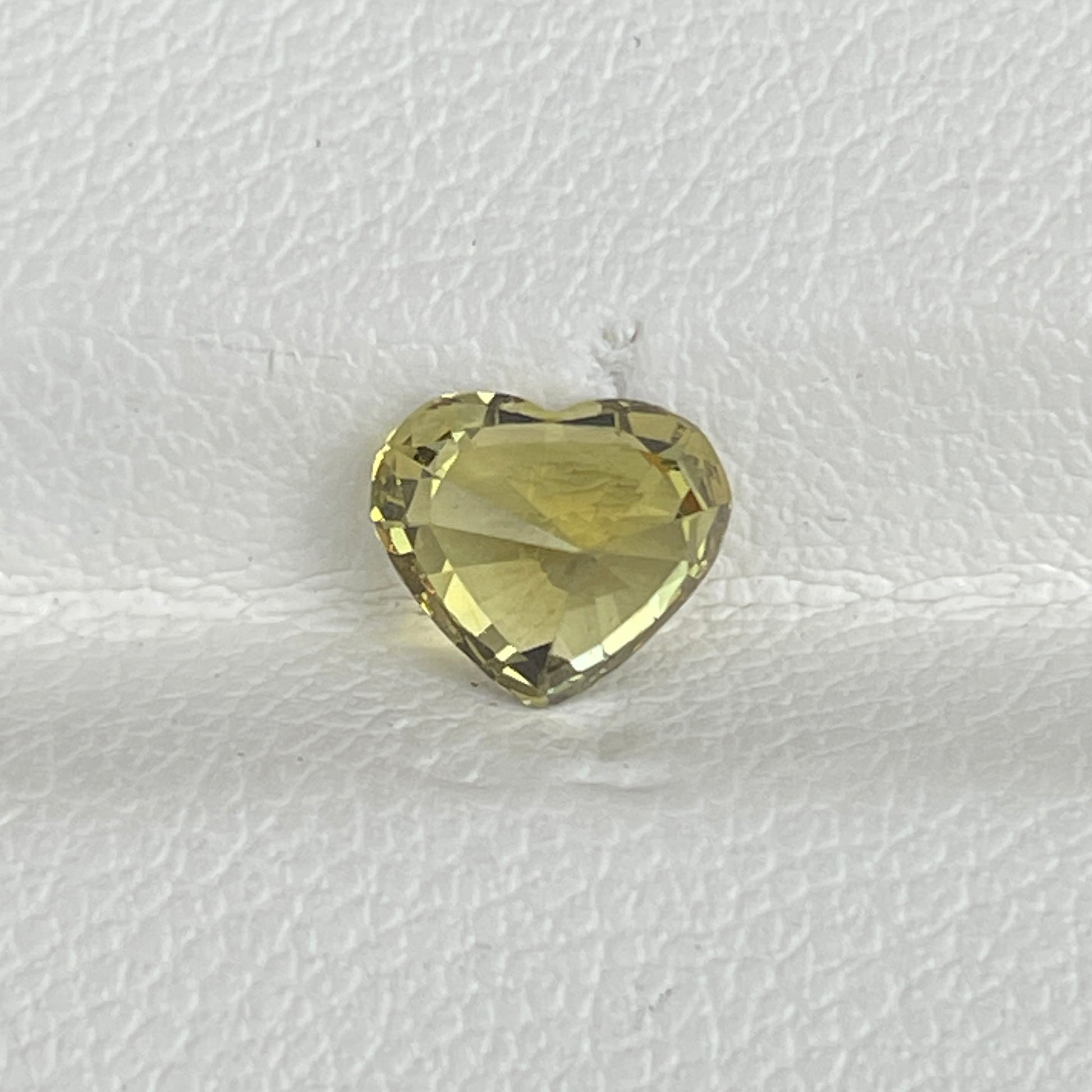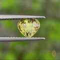A delightful heart-shaped Yellow Chrysoberyl from Sri Lanka, featuring a bright yellow hue, VS clarity, and a sparkling luster. Its unheated nature enhances its natural beauty, making it a perfect choice for romantic or statement jewelry.
