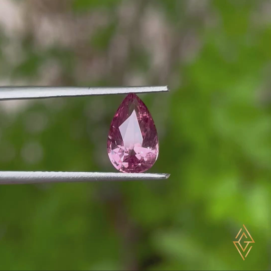 An exquisite pear-shaped Padparadscha Sapphire from Madagascar, showcasing a captivating orangish-pink hue with a sparkling luster. This heated gem highlights its natural beauty, with excellent clarity and a radiant glow.