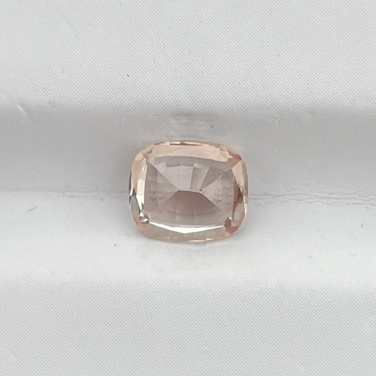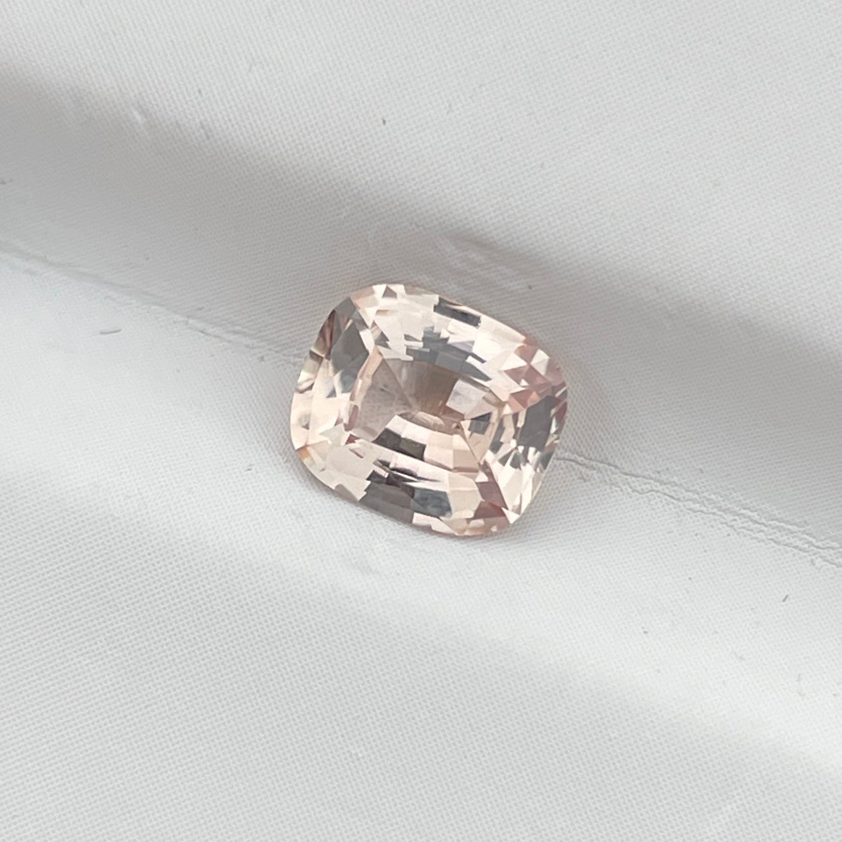 A radiant cushion-cut yellow-peach sapphire from Madagascar, showcasing a warm, vibrant hue with sparkling brilliance and exceptional clarity.