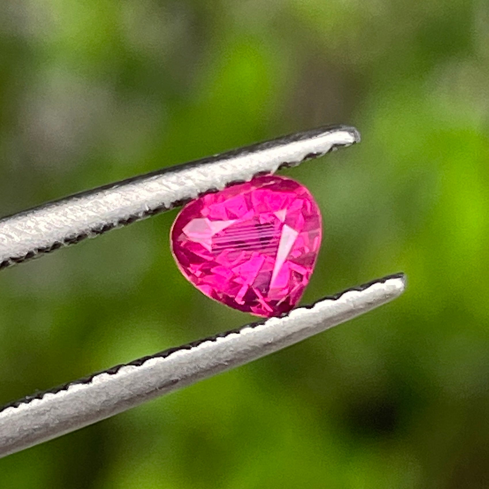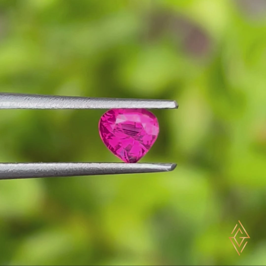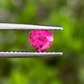 A charming pear-shaped Red Sapphire showcasing a Reddish Pink with bright brilliance and a sparkling luster. Unheated and naturally vibrant, this gem reflects purity and rarity with its fine clarity and elegant appeal.
