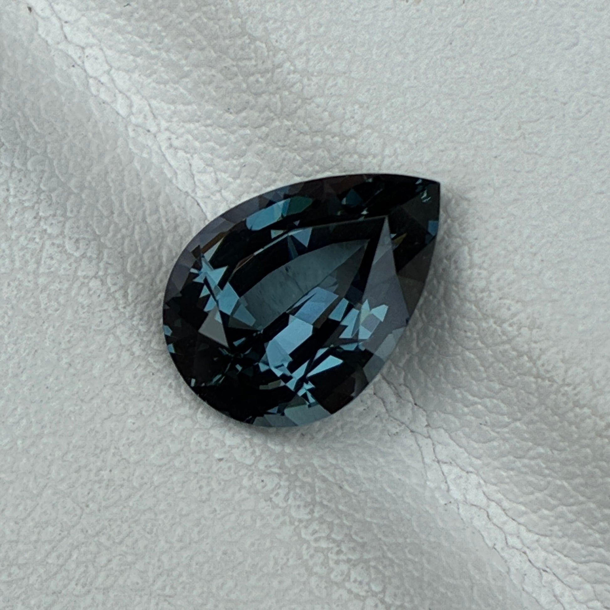 A pear-shaped Bluish Green Spinel with sparkling luster and exceptional clarity. With no treatments and a VVS clarity grade, this gem is a pristine example of natural beauty and refined craftsmanship.