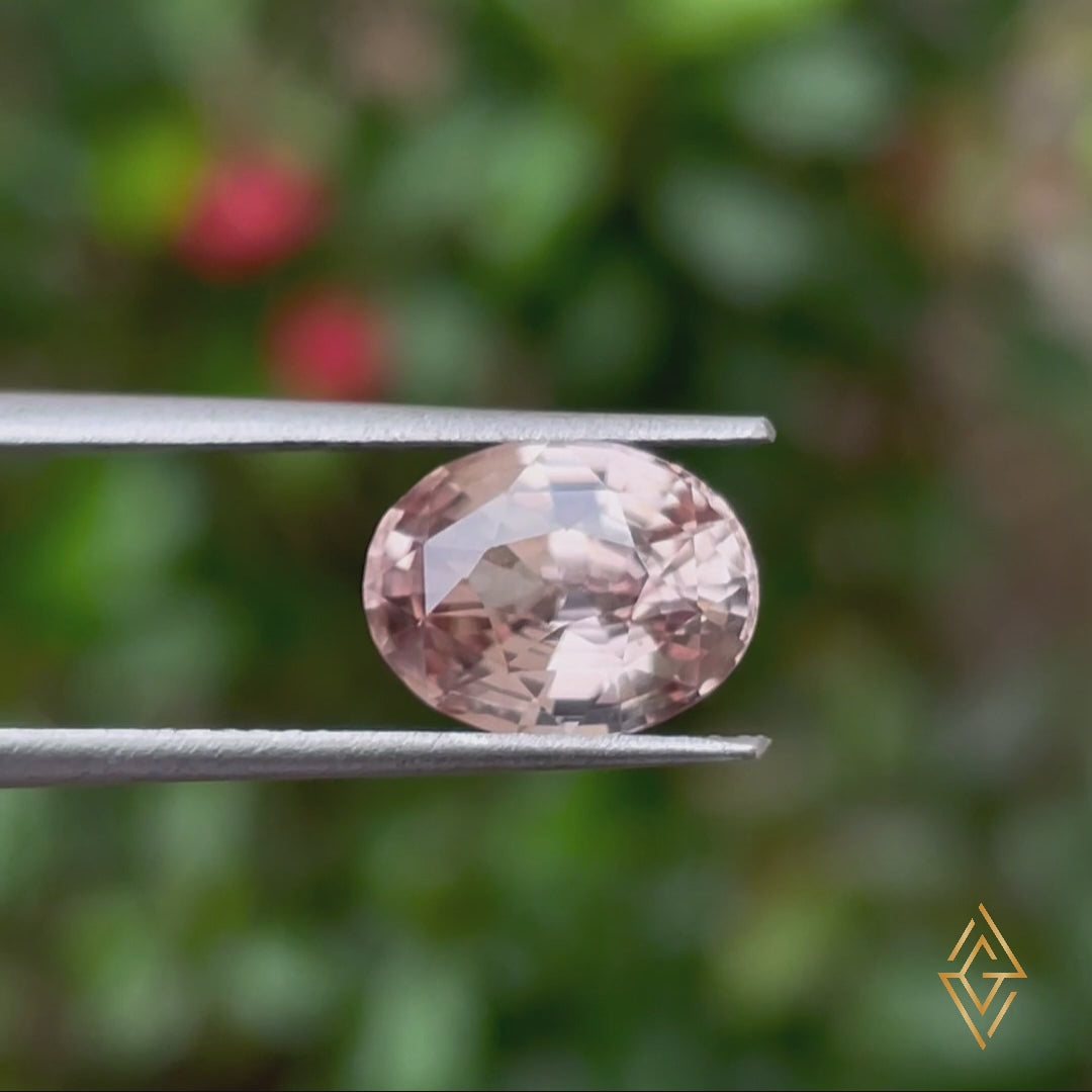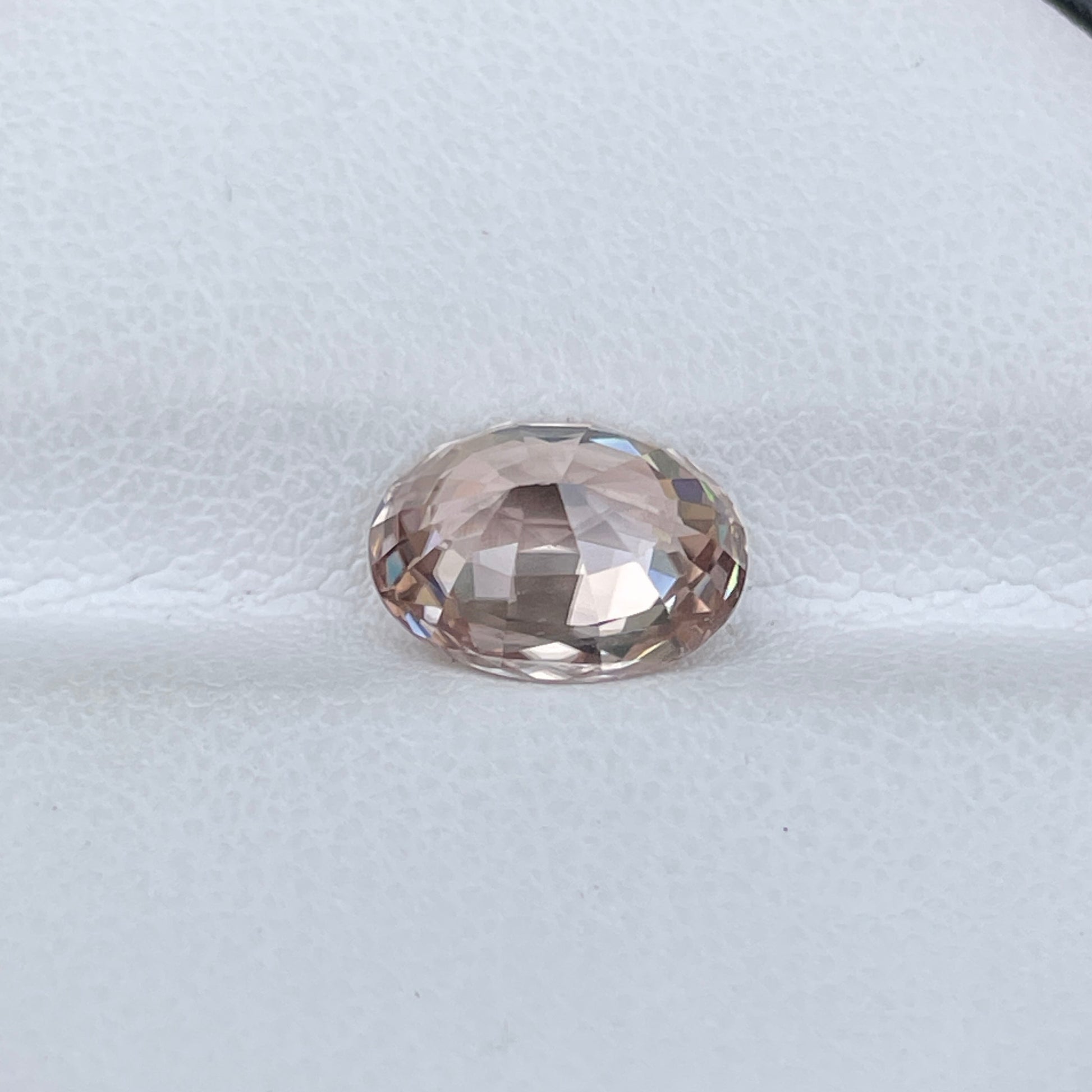 A lovely oval-cut Peach Zircon from Madagascar, showcasing a soft pastel hue and elegant brilliance. With its exceptional VVS clarity and natural, untreated character, this gem exudes gentle warmth and sophistication. The harmonious blend of color and sparkle makes it an exquisite choice for refined jewelry or a graceful addition to any gemstone collection.