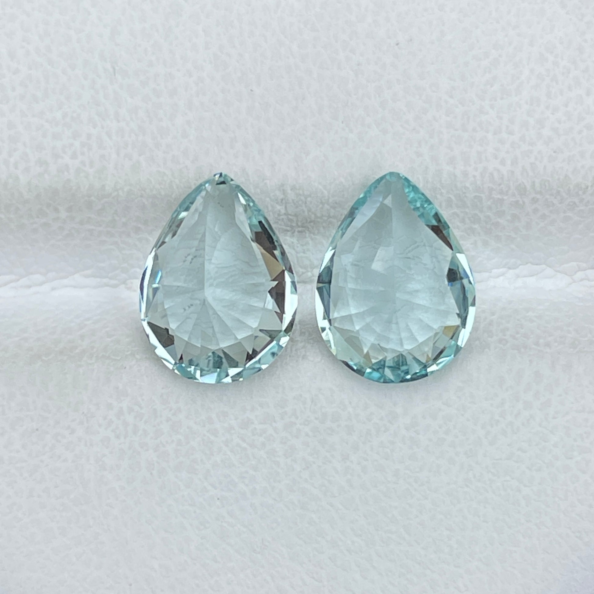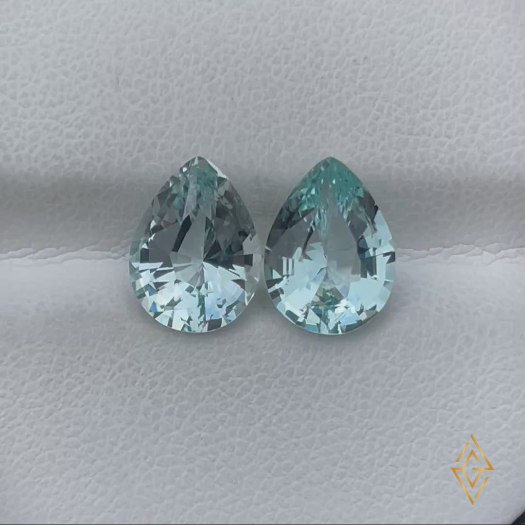 A beautifully matched pair of pear-cut Aquamarines, radiating a soft and luminous blue with exceptional clarity and brilliance—ideal for creating statement earrings or high-end custom designs.