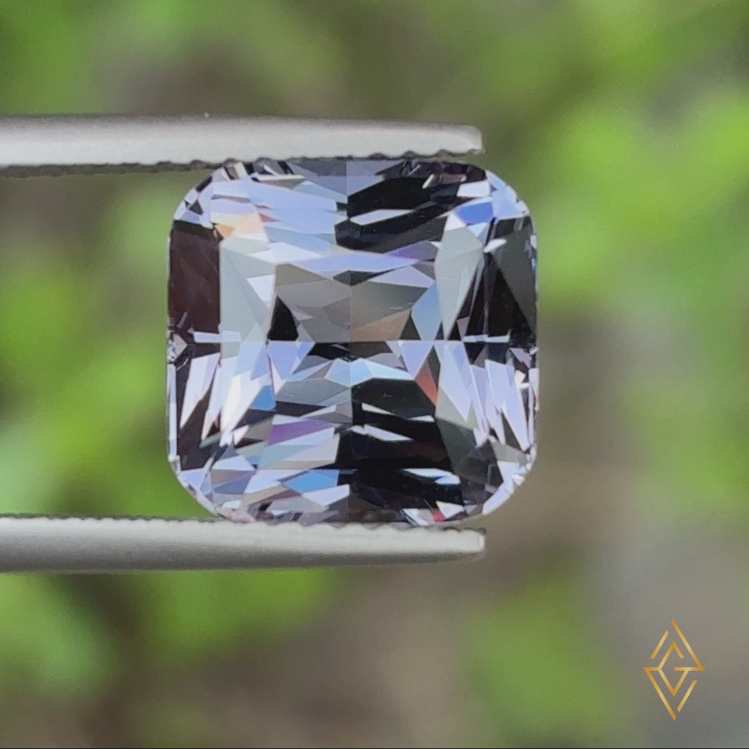 An exquisite cushion-cut Purple Spinel from Sri Lanka, boasting a rich royal hue, exceptional clarity, and vibrant brilliance—all in its rare, unheated state.