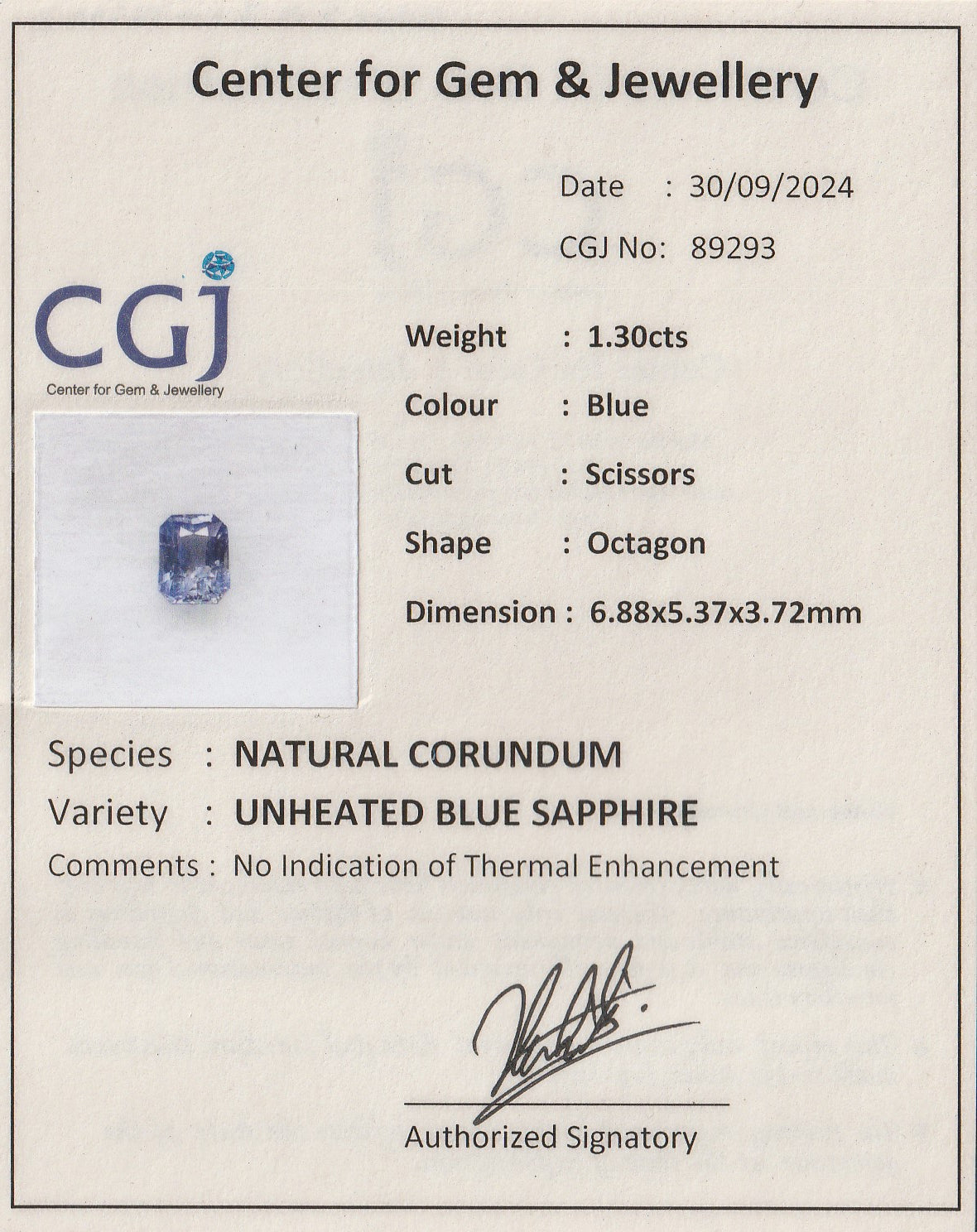 Natural Blue Sapphire – 1.30 Cts