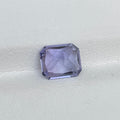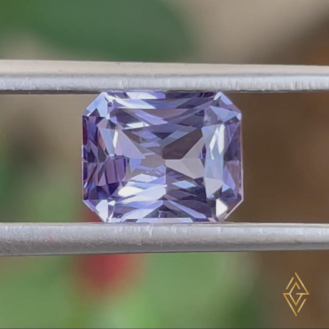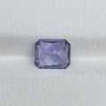 A striking radiant-cut purple sapphire from Sri Lanka, showcasing a vivid violet hue with sparkling brilliance and slight inclusions.