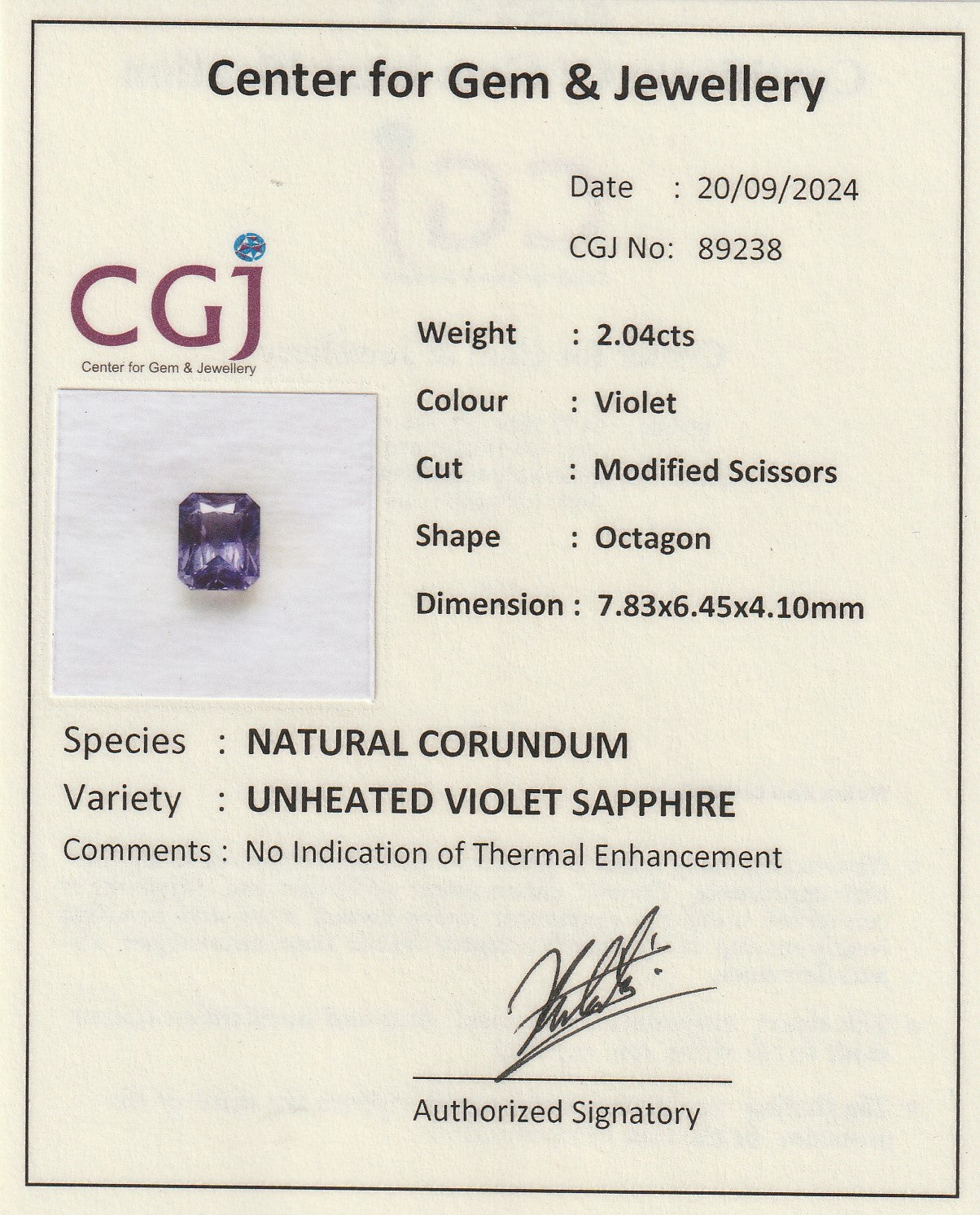Certified 2.04 Cts Natural Unheated Purple Sapphire Radiant Cut Loose Gemstone Gift
