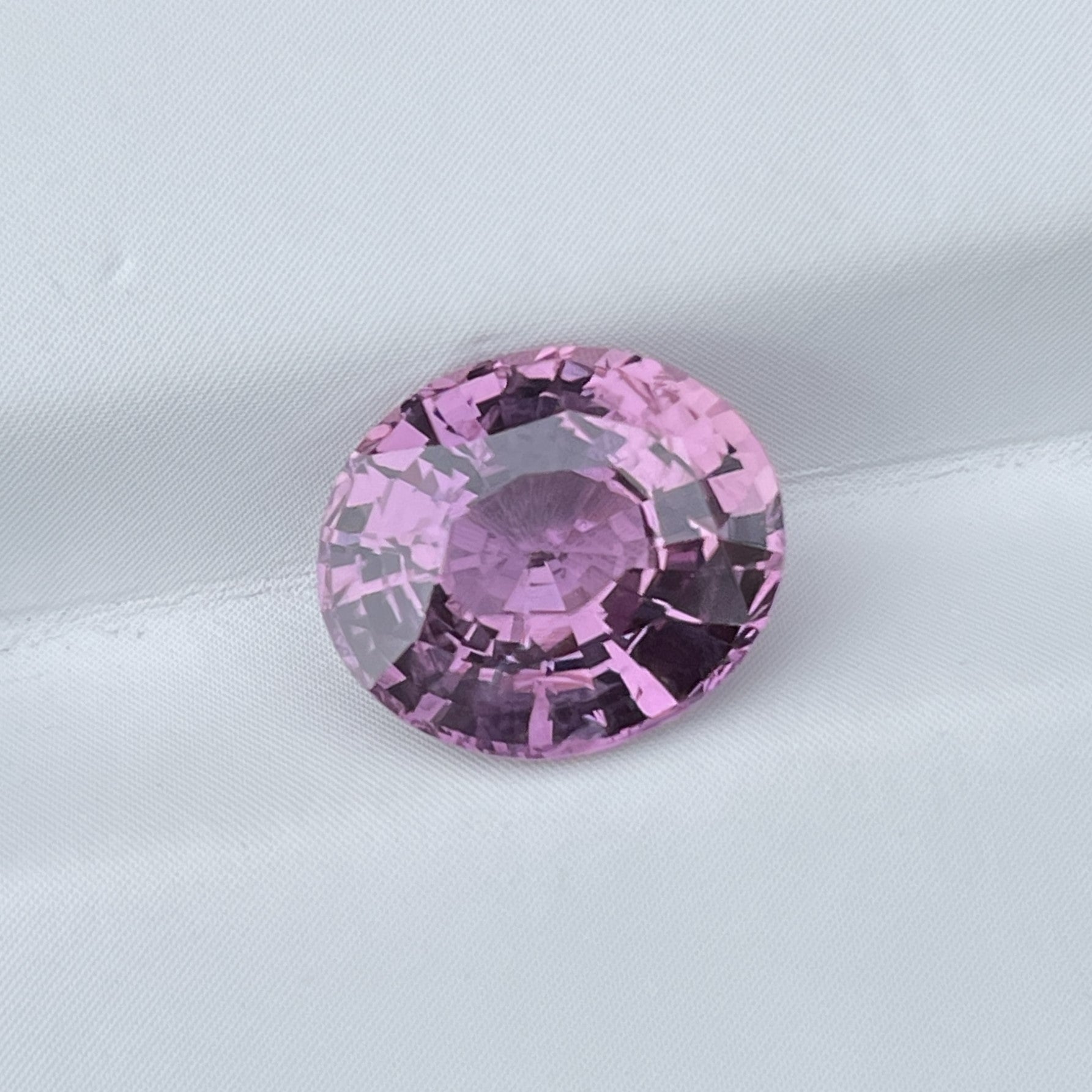 A stunning oval-cut pink sapphire from Tanzania, radiating a lively rosy hue with sparkling brilliance and excellent clarity.