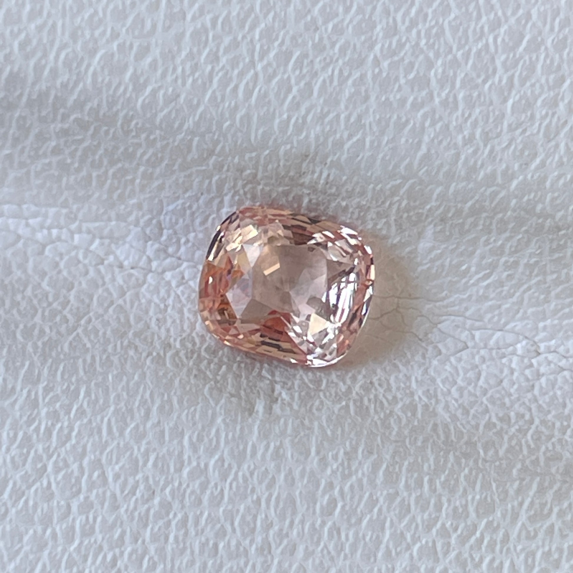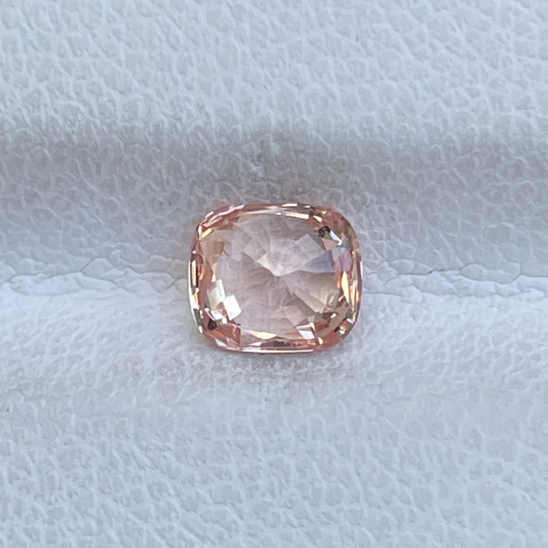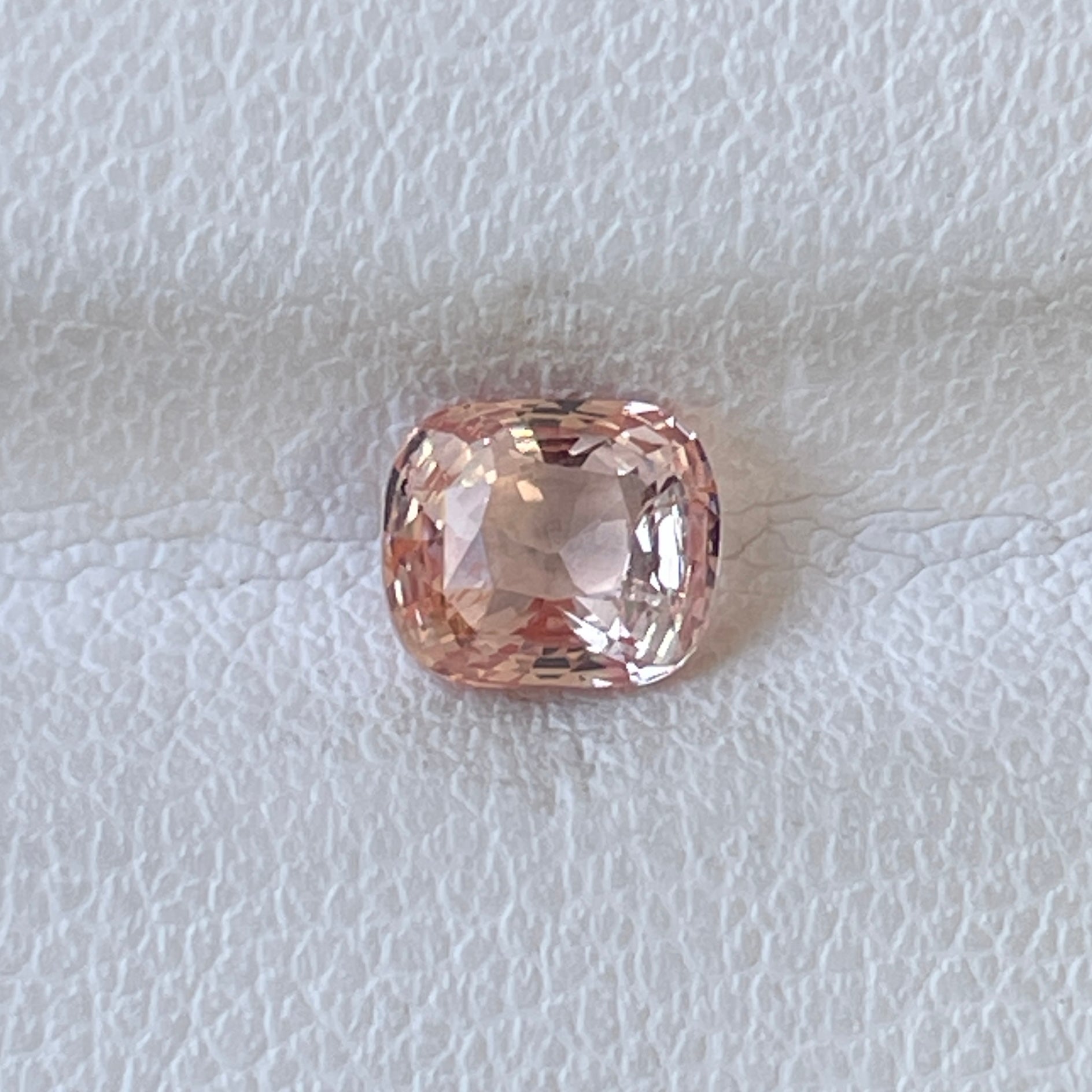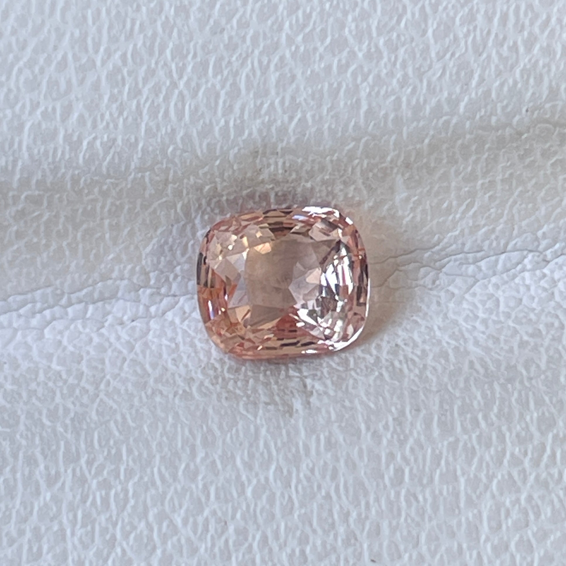 A stunning cushion-shaped Padparadscha Sapphire from Madagascar, featuring a captivating orangish-pink hue with exceptional clarity. This unheated gem boasts sparkling luster and a natural, untreated beauty that makes it a standout piece for any collection.