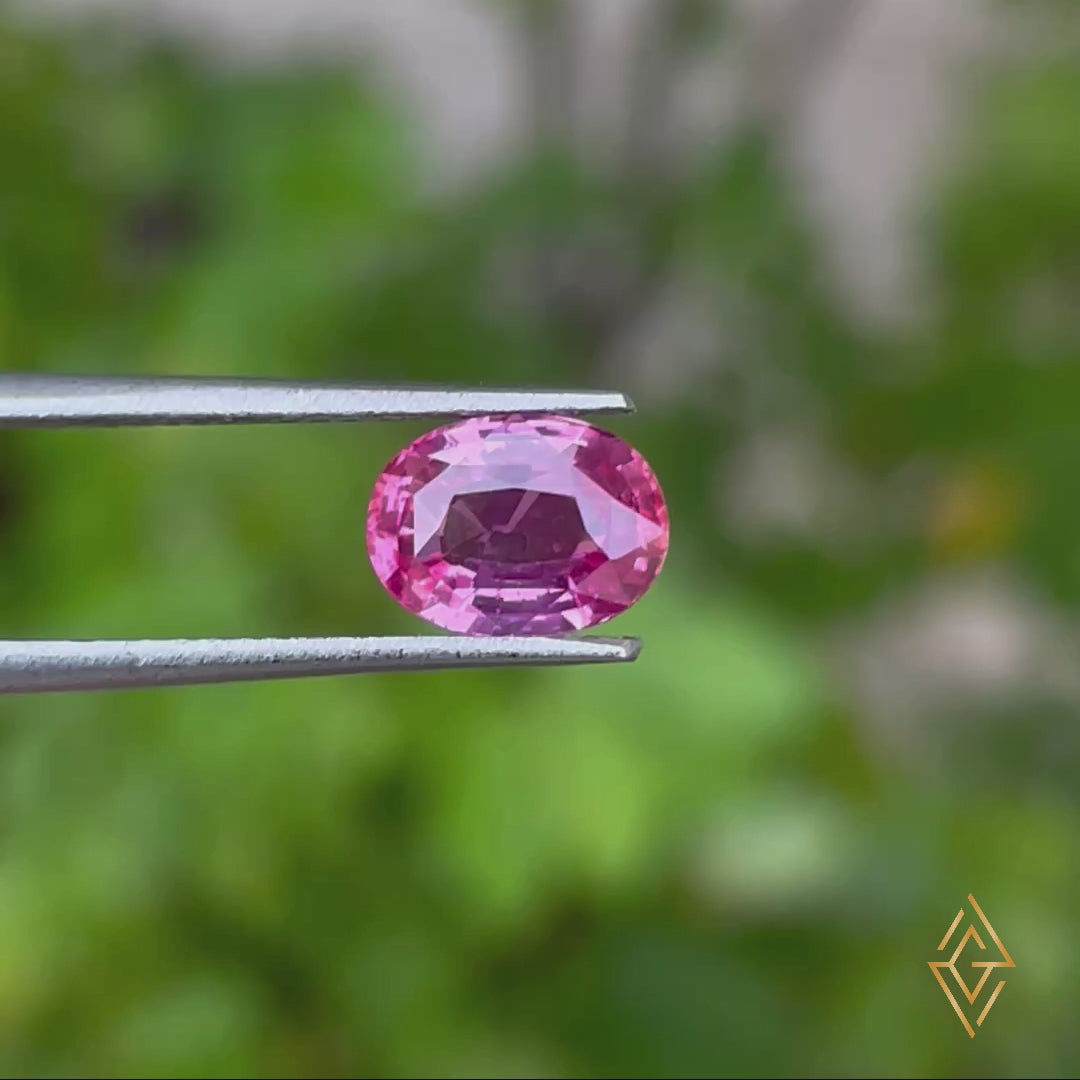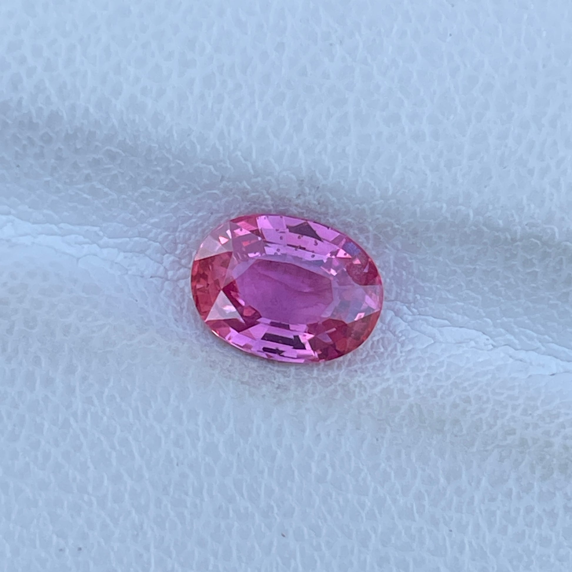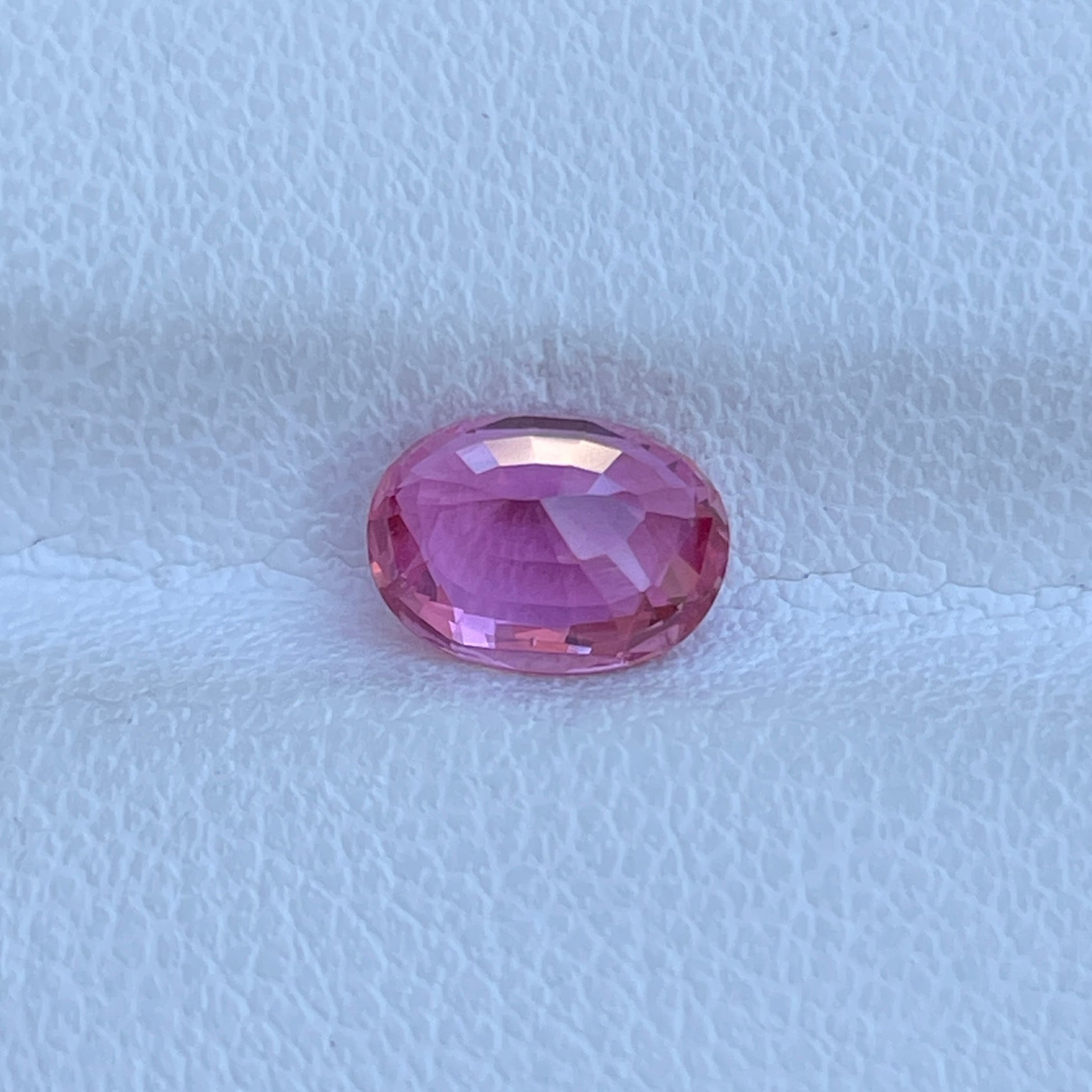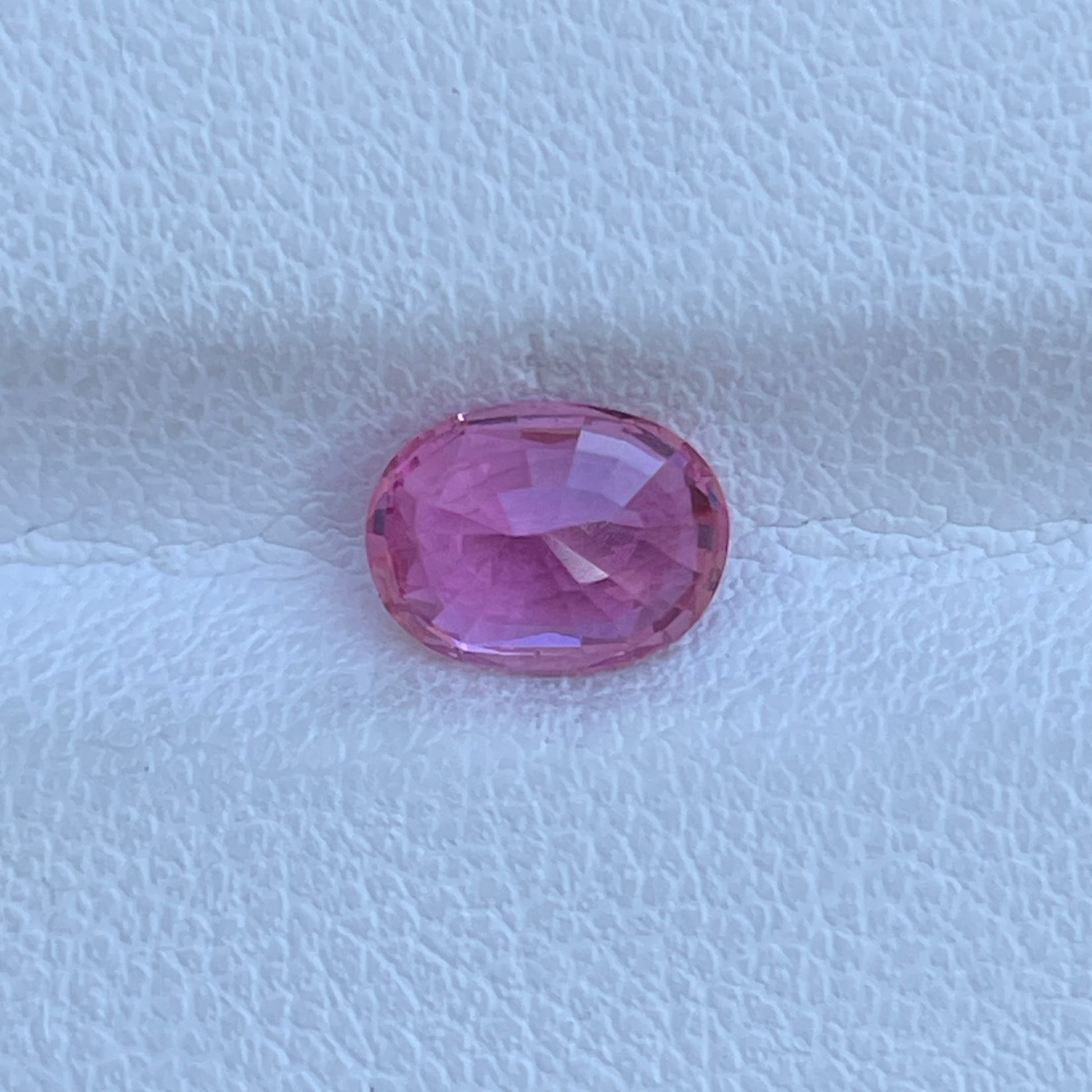 A rare and captivating Oval-cut Padparadscha Sapphire from Sri Lanka, showcasing a delicate orangish pink hue, sparkling luster, and excellent clarity—all preserved in its unheated and natural form.
