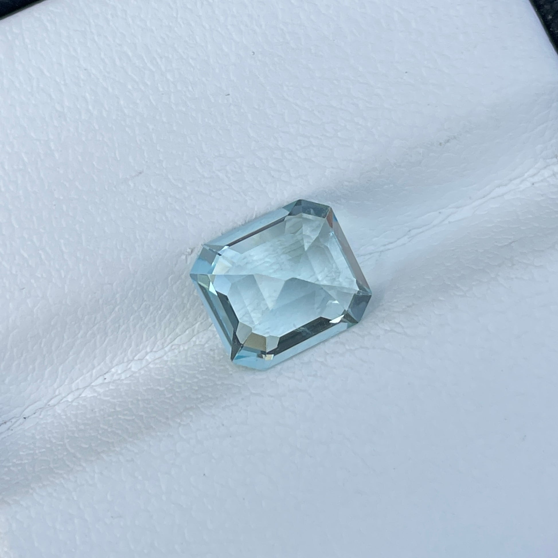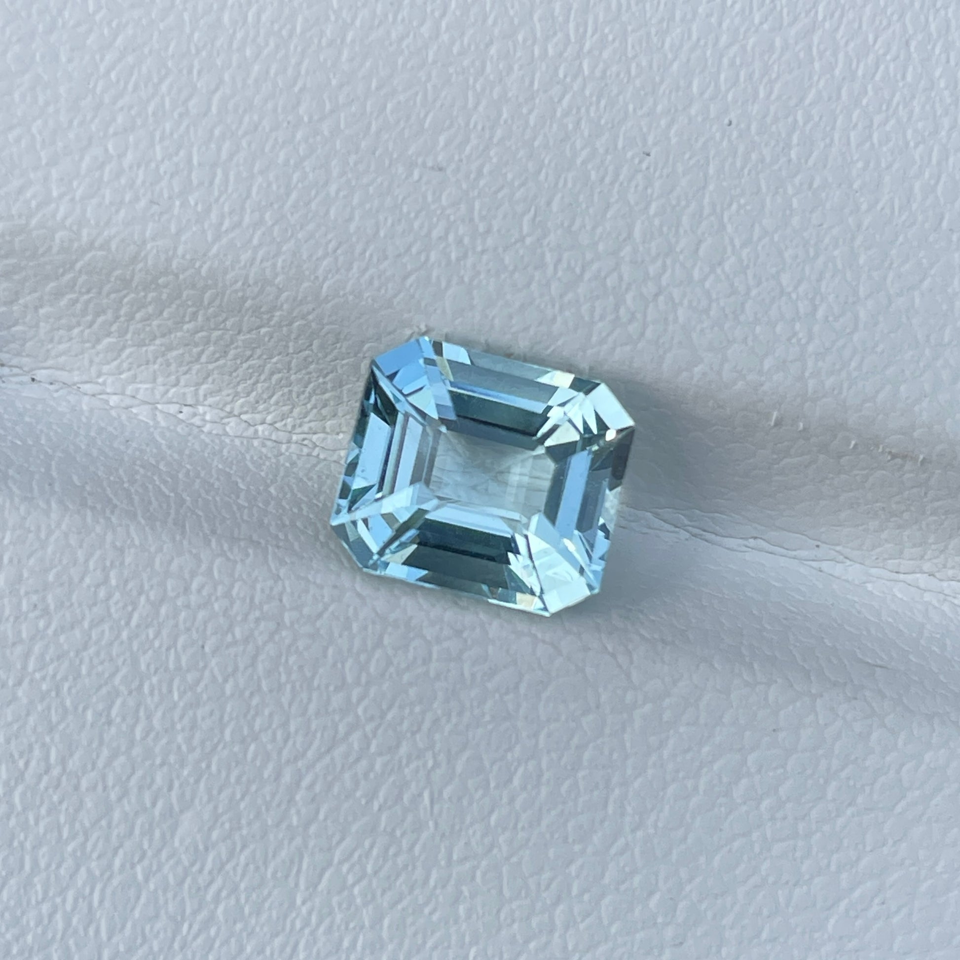 An exquisite emerald-cut Blue Aquamarine from Madagascar, showcasing a stunning blue hue, VS clarity, and a sparkling luster. This unheated gemstone offers exceptional natural beauty, making it an ideal choice for high-end jewelry.