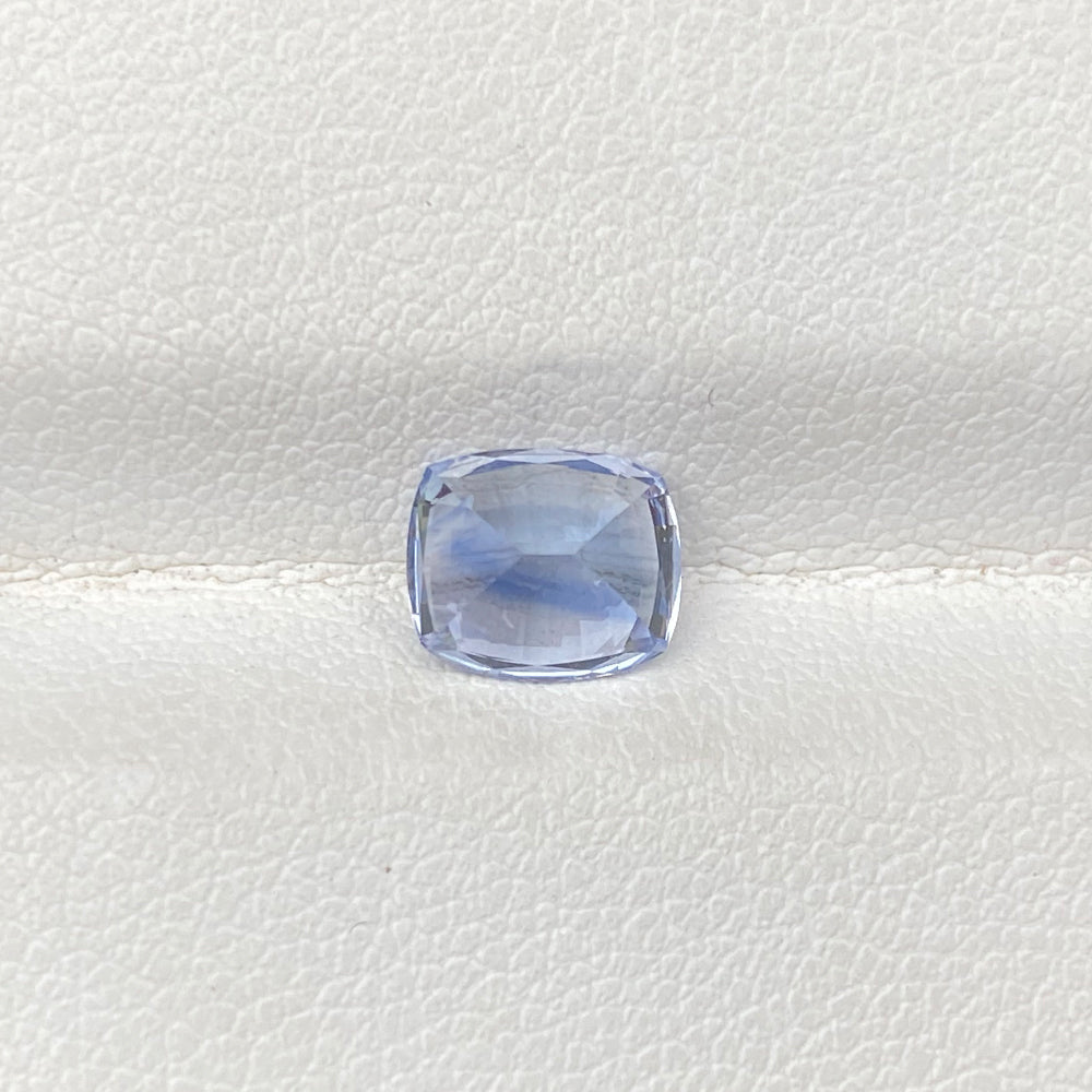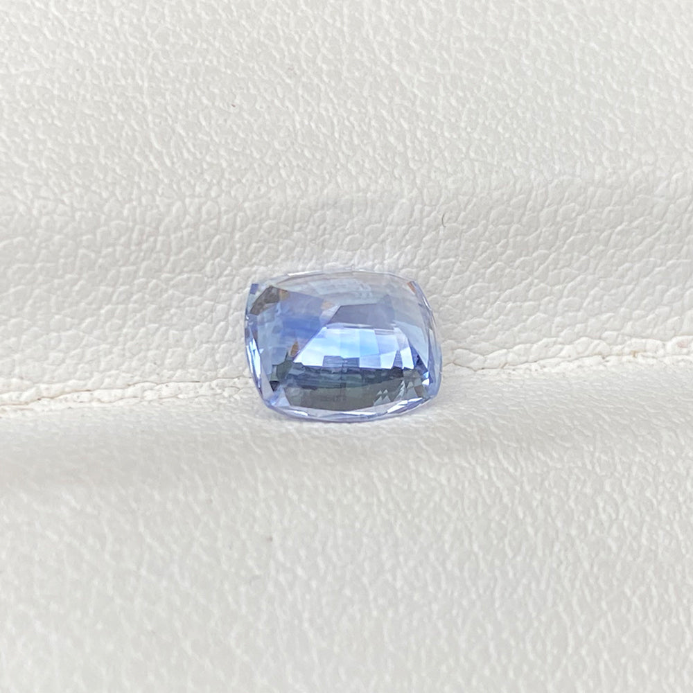 A captivating cushion-shaped Blue Sapphire from Sri Lanka, featuring a medium-sky blue hue with excellent clarity and a brilliant, sparkling luster. Its well-balanced proportions and VVS clarity highlight the gem’s natural elegance and refined beauty.