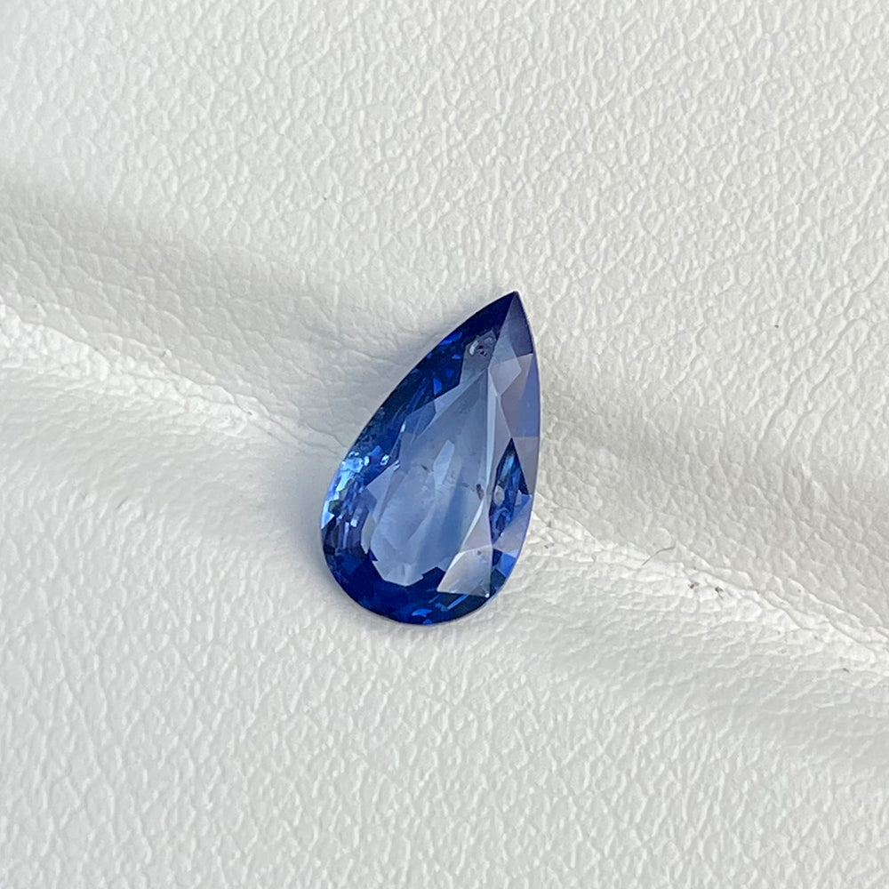 A graceful pear-cut Blue Sapphire from Sri Lanka, featuring a pleasing blue tone with bright brilliance and sparkling luster. Well-proportioned and nicely cut, this gem beautifully reflects light, enhancing its natural charm and appeal.