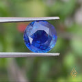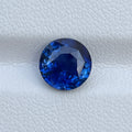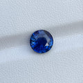 A brilliant round-cut blue sapphire, showcasing a vivid deep-blue hue with sparkling brilliance and excellent clarity.