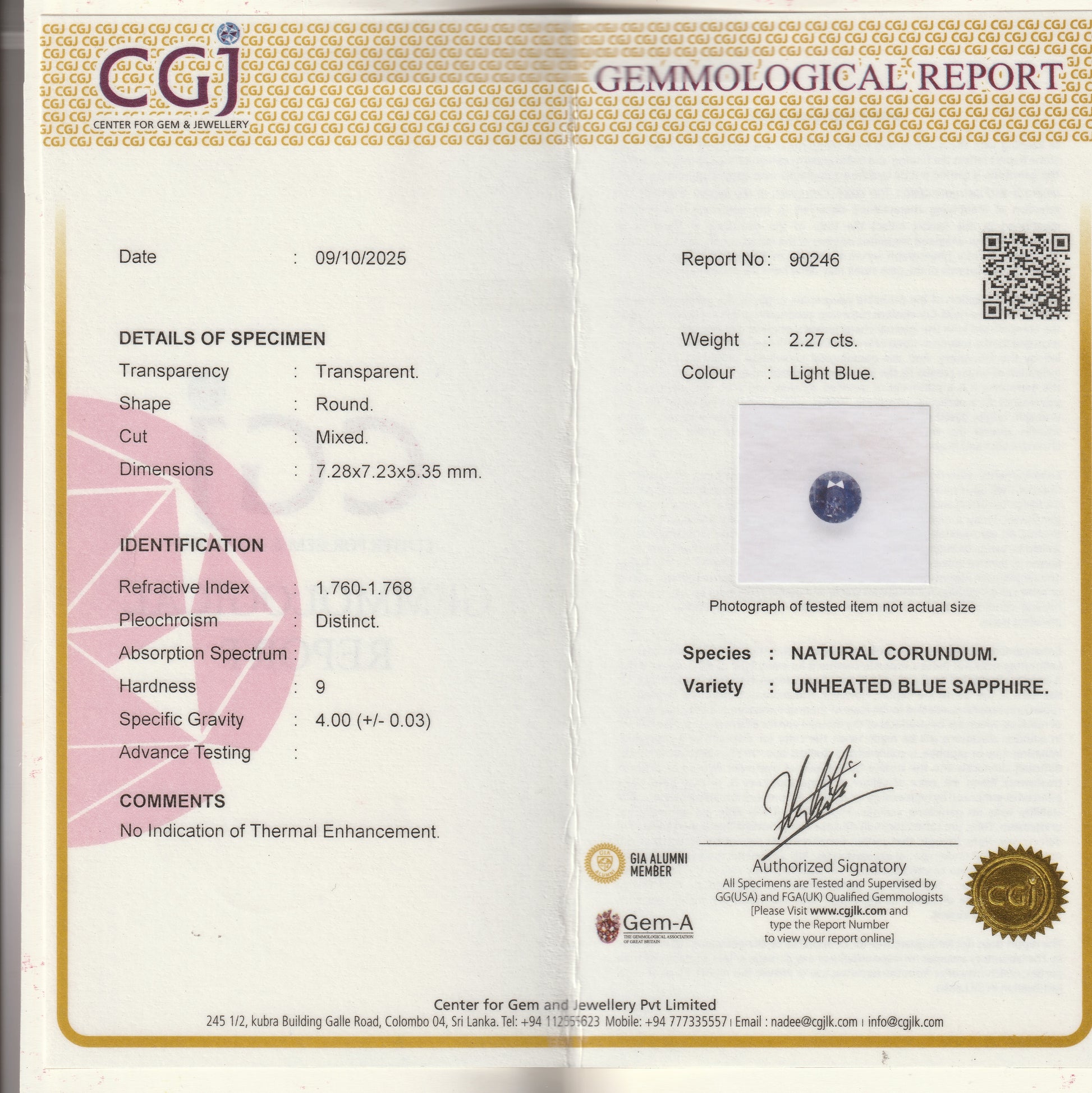Natural Certified Unheated Blue Sapphire 2.27ct Round Cut Gemstone • Luxury Gift