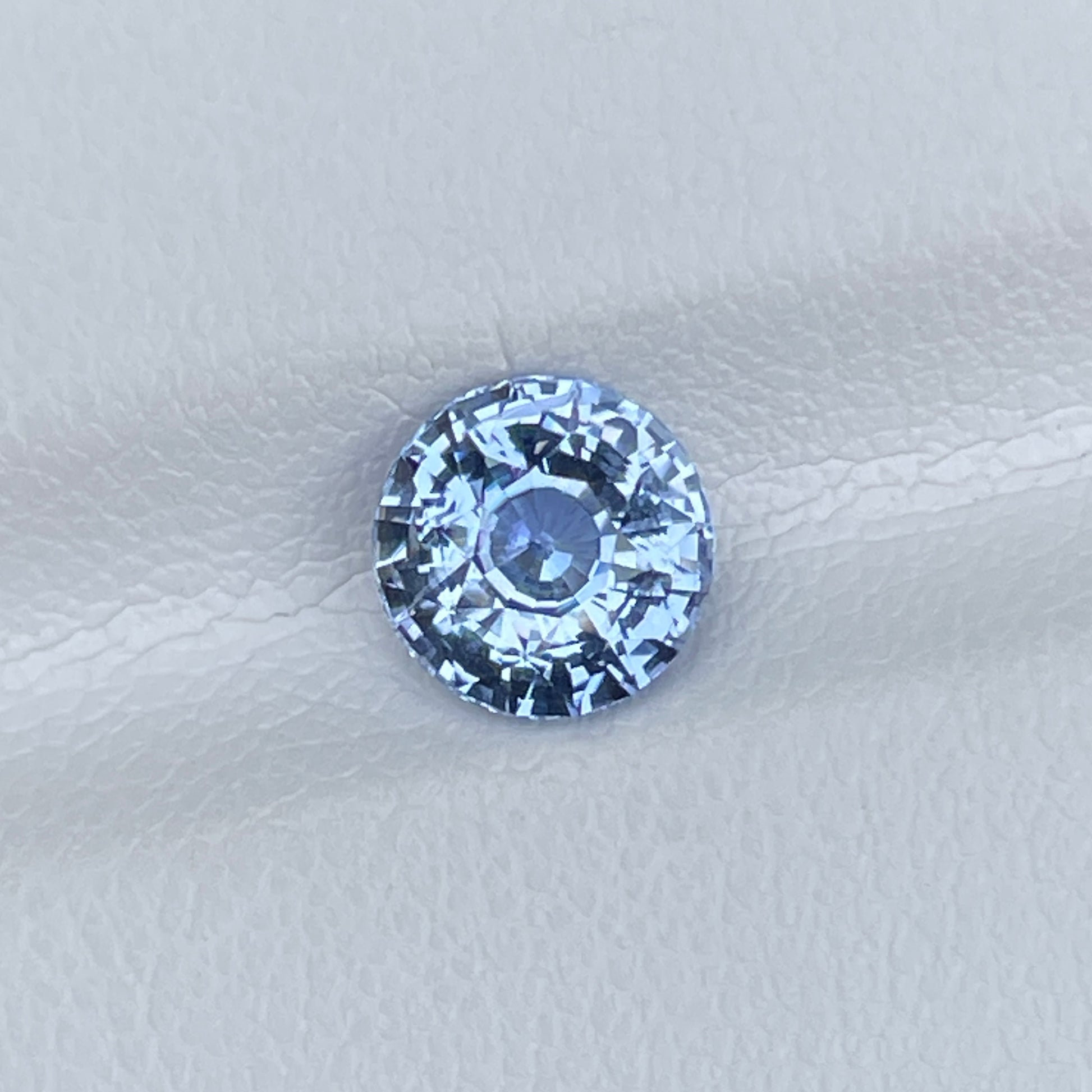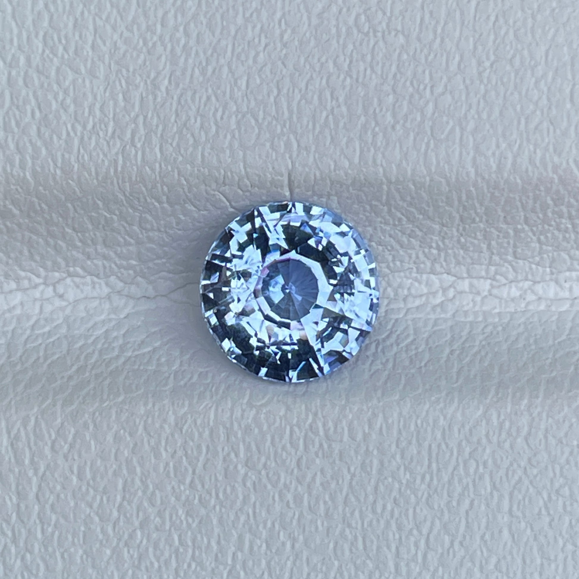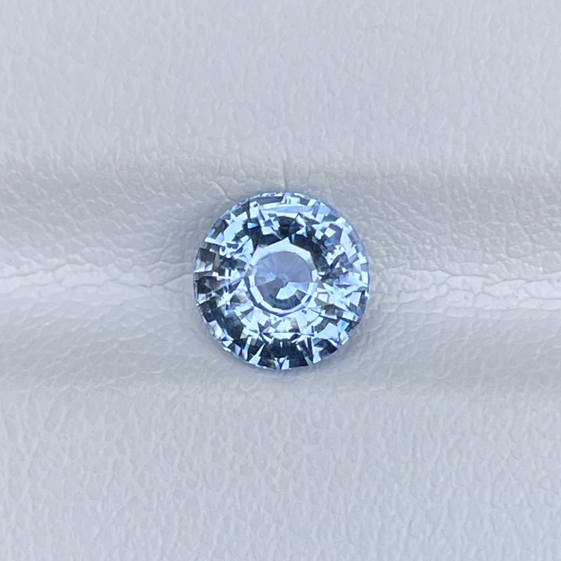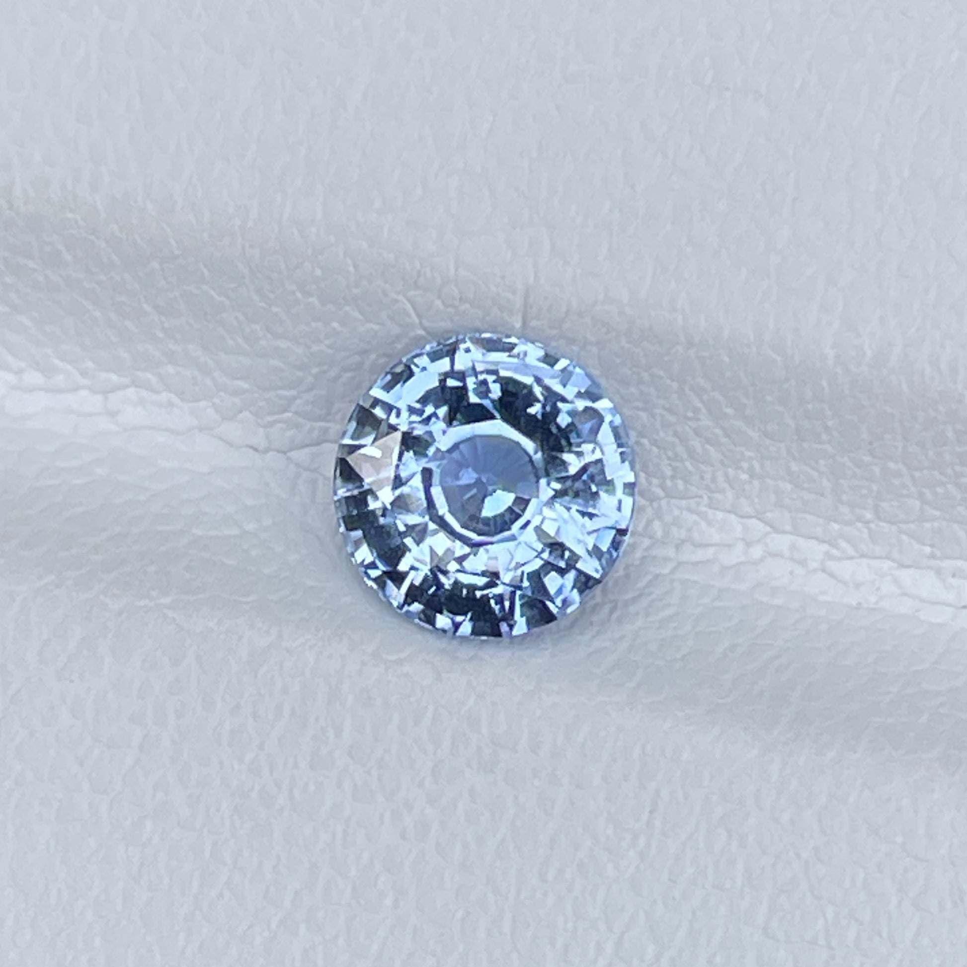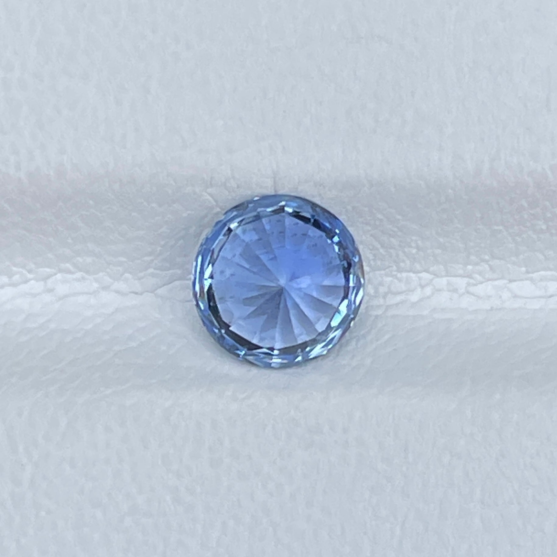 A round-cut Blue Sapphire showcasing excellent clarity and sparkling luster. This unheated sapphire is an elegant choice for fine jewelry or a distinguished gemstone collection.