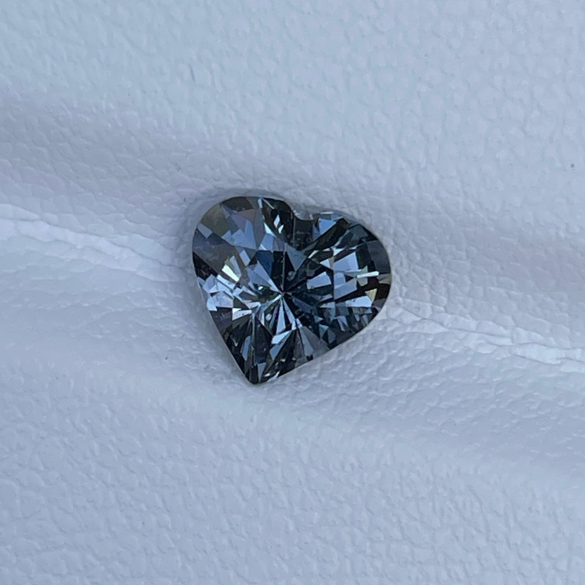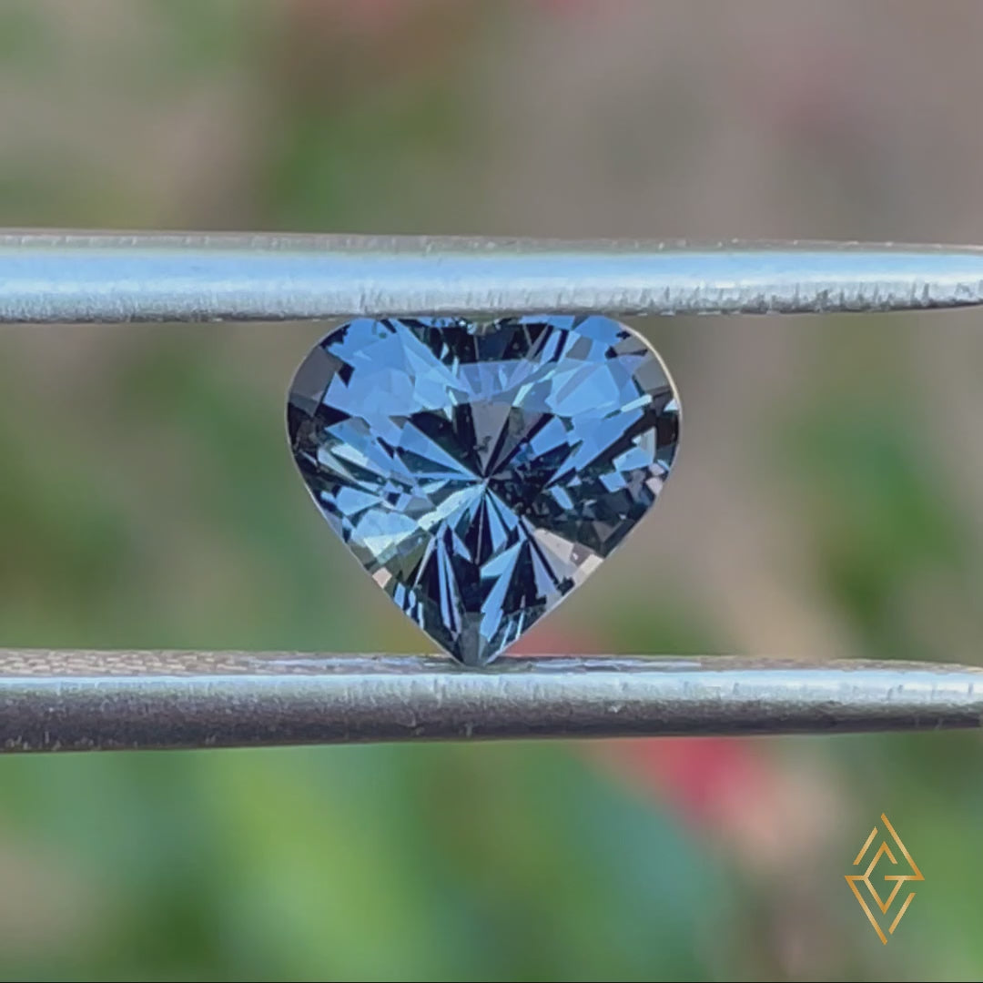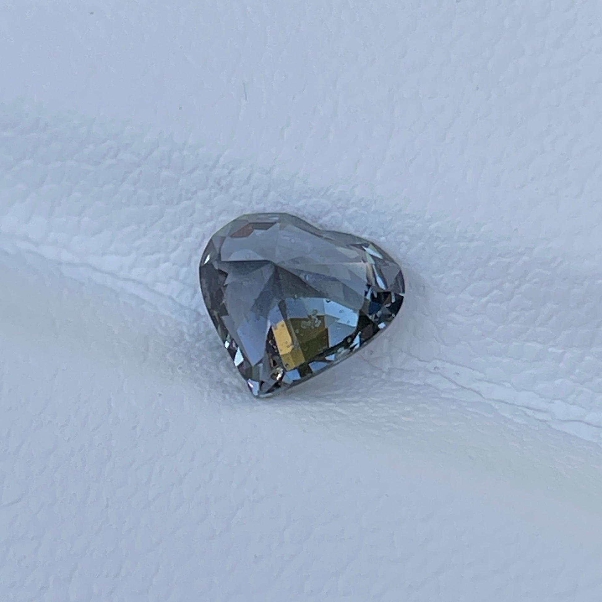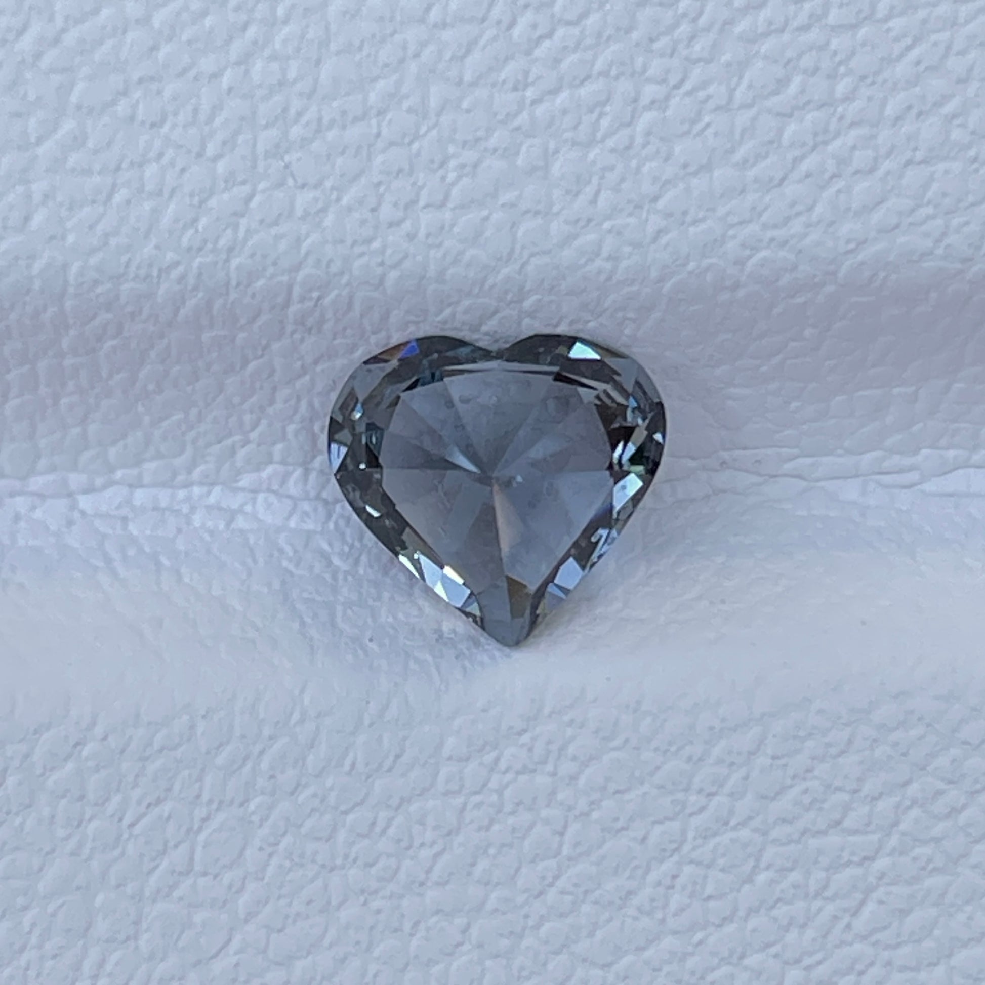 A striking heart-shaped Spinel from Sri Lanka, featuring a sophisticated grey color with sparkling luster. This unheated gem highlights its natural beauty, offering excellent clarity and a unique hue that will make a statement in any collection.