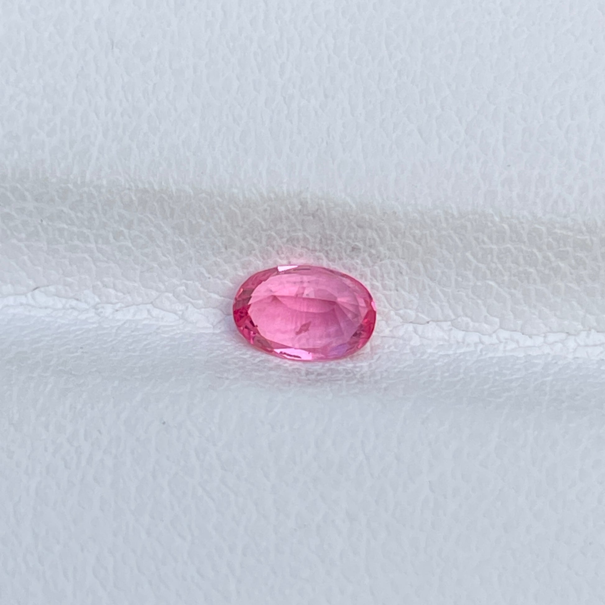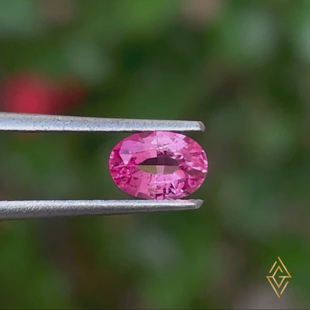 A stunning oval-cut Mahenge Spinel from Tanzania, showcasing a captivating pink hue and a sparkling luster. With its unique color and natural, untreated purity, this gem is a perfect addition to any fine collection or for those seeking a refined piece of jewelry.