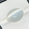 An enchanting Cabochon-cut White Moonstone, displaying a luminous glow and sparkling luster. With its fine VVS clarity and captivating sheen, this Moonstone is perfect for elegant jewelry pieces or as a remarkable gem for any collection.