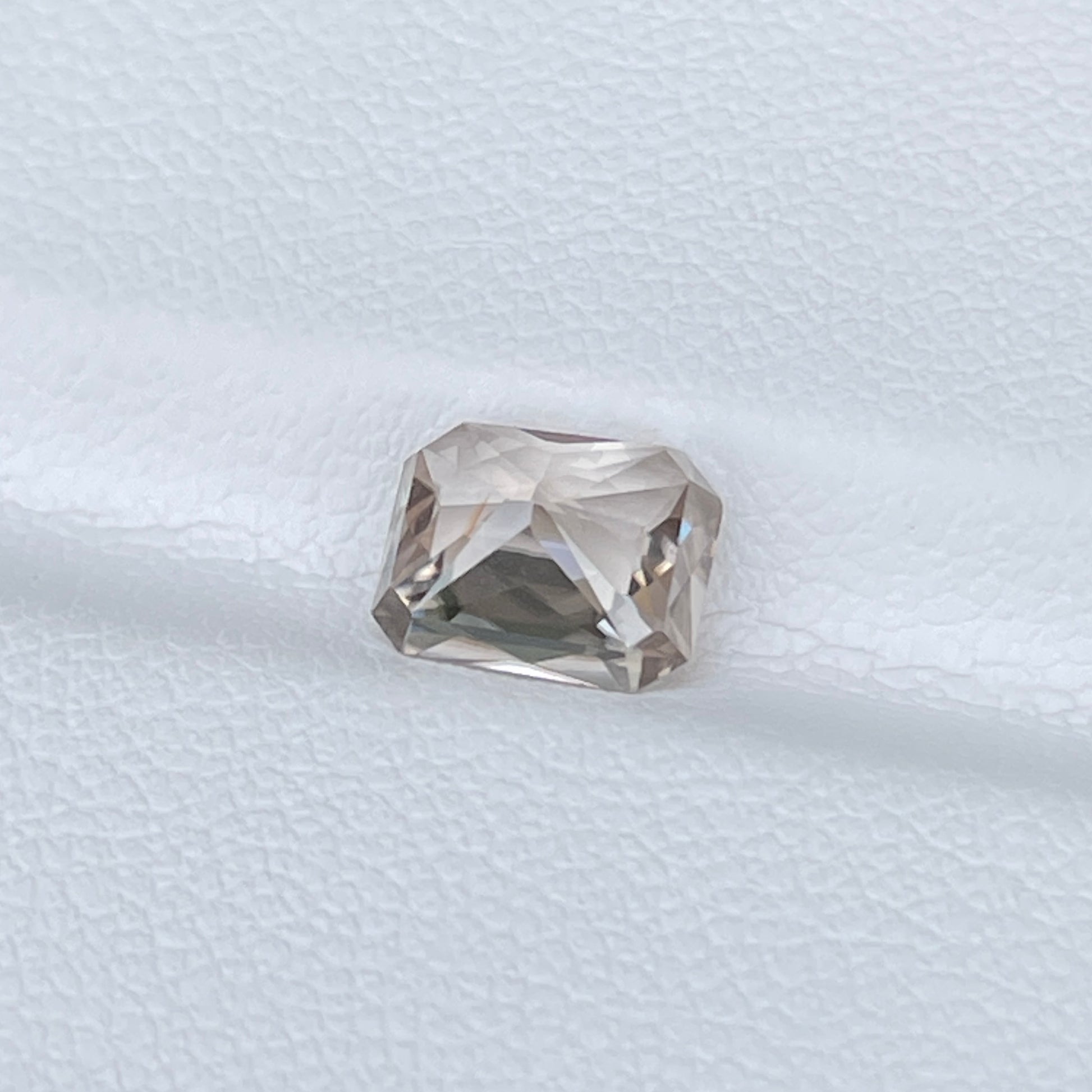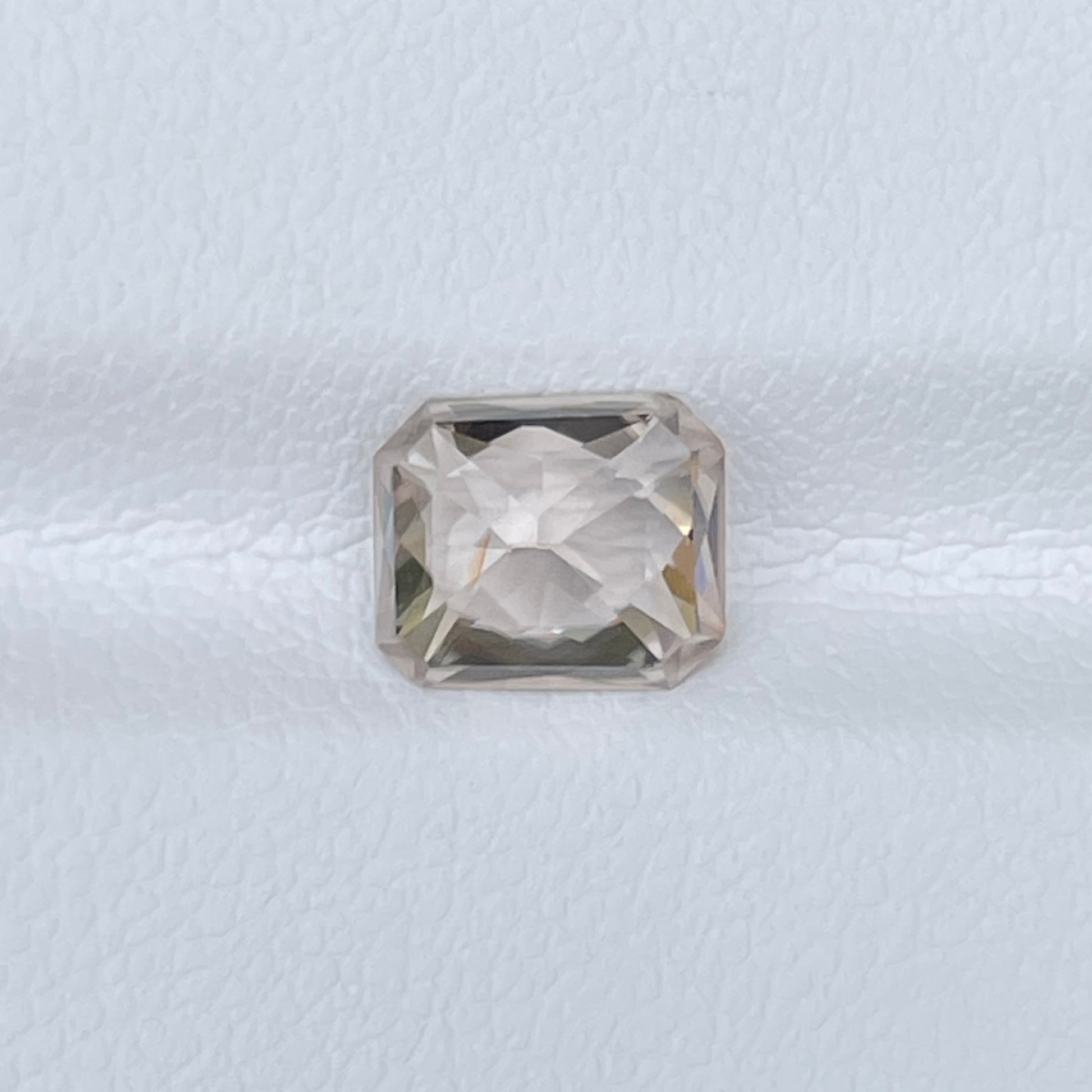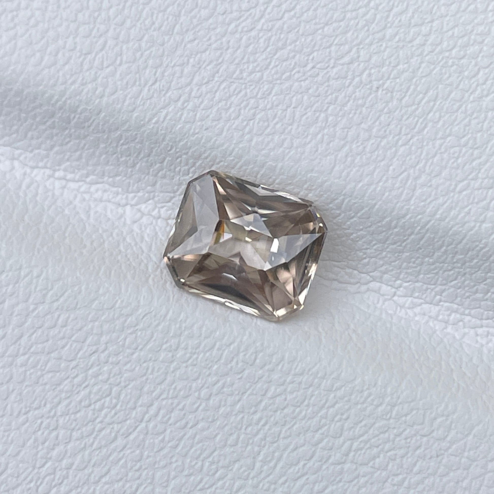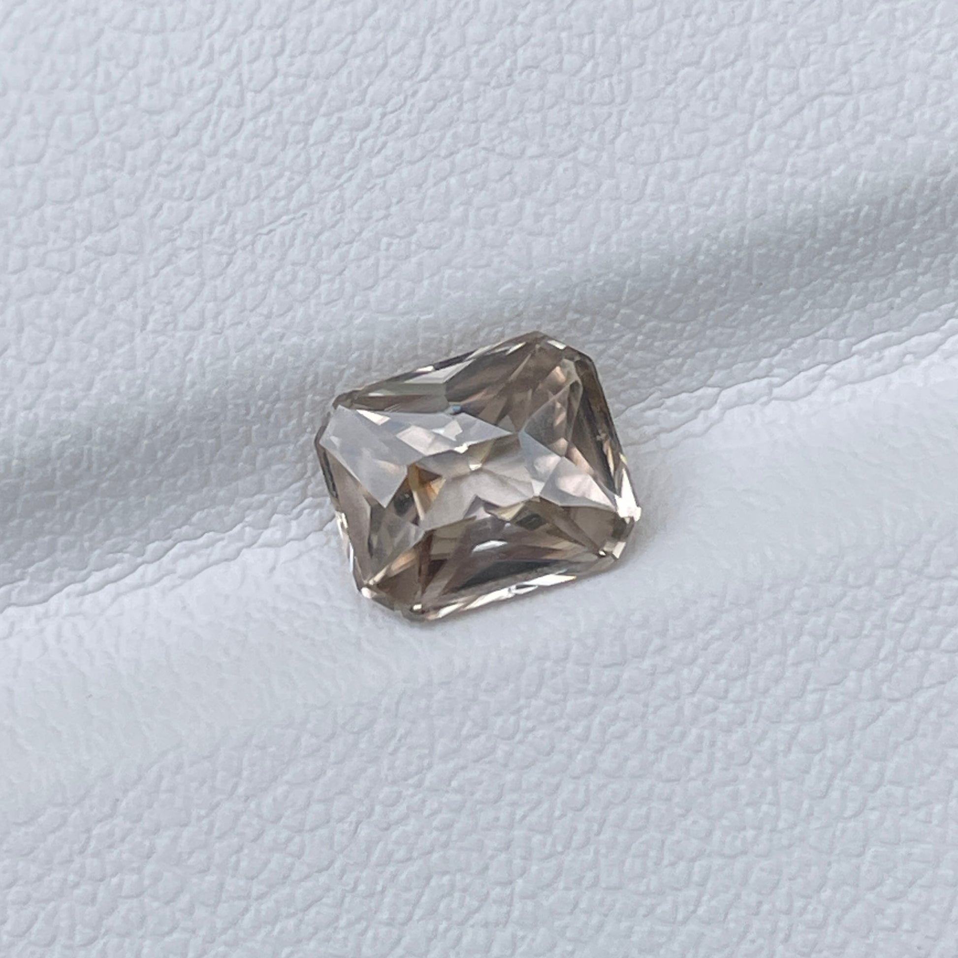 A radiant-cut Peach Zircon from Madagascar, featuring a peach color and VVS clarity.