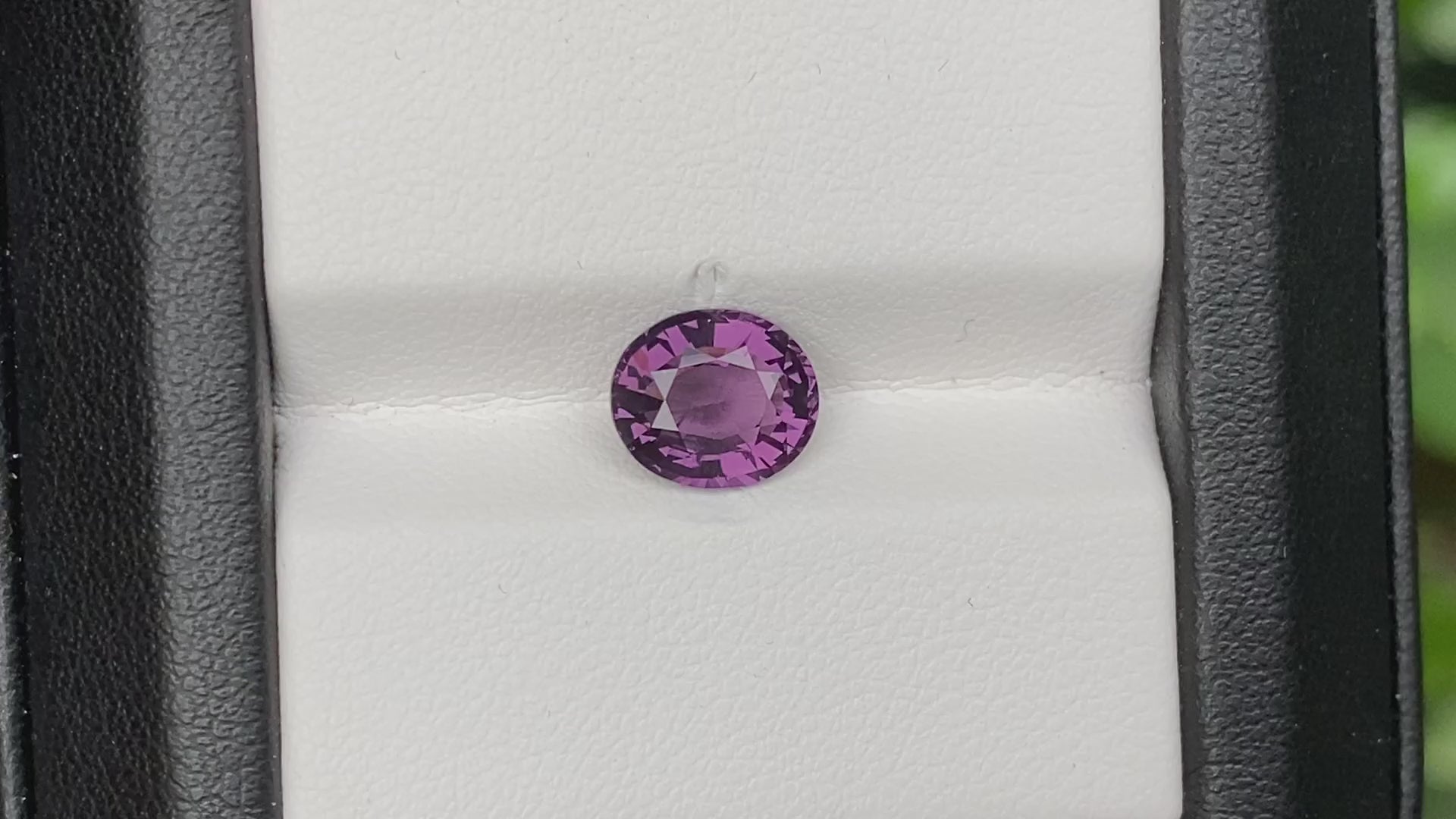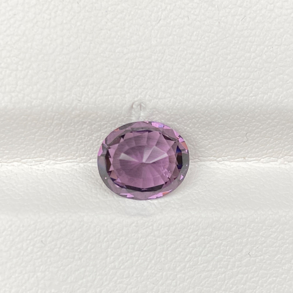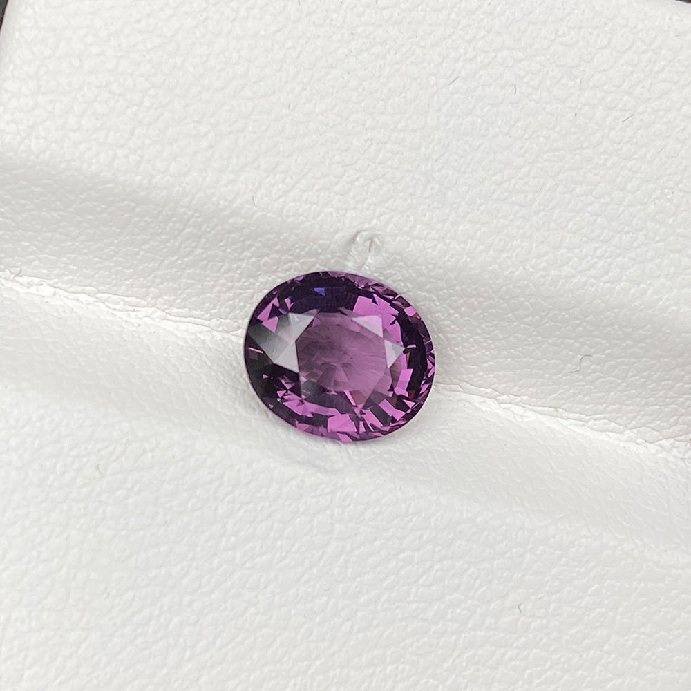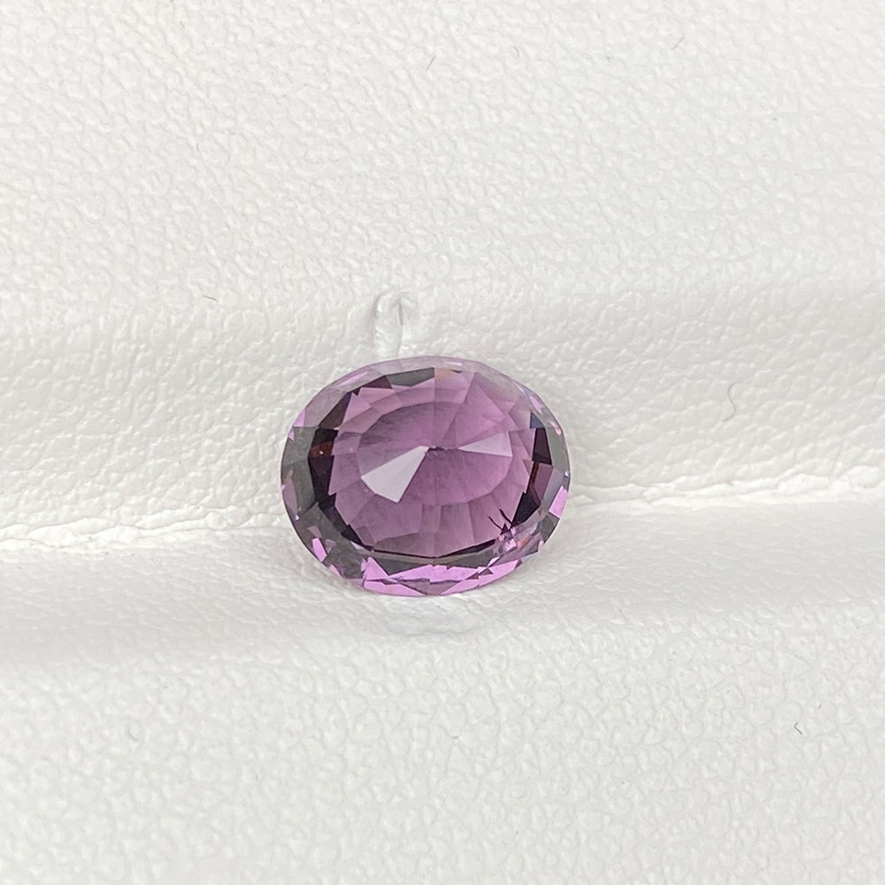 An elegant oval-shaped Spinel from Madagascar, featuring a rich purple color with exceptional sparkle. This untreated gem boasts impressive clarity and a vibrant luster, making it a perfect addition to any fine jewelry collection.