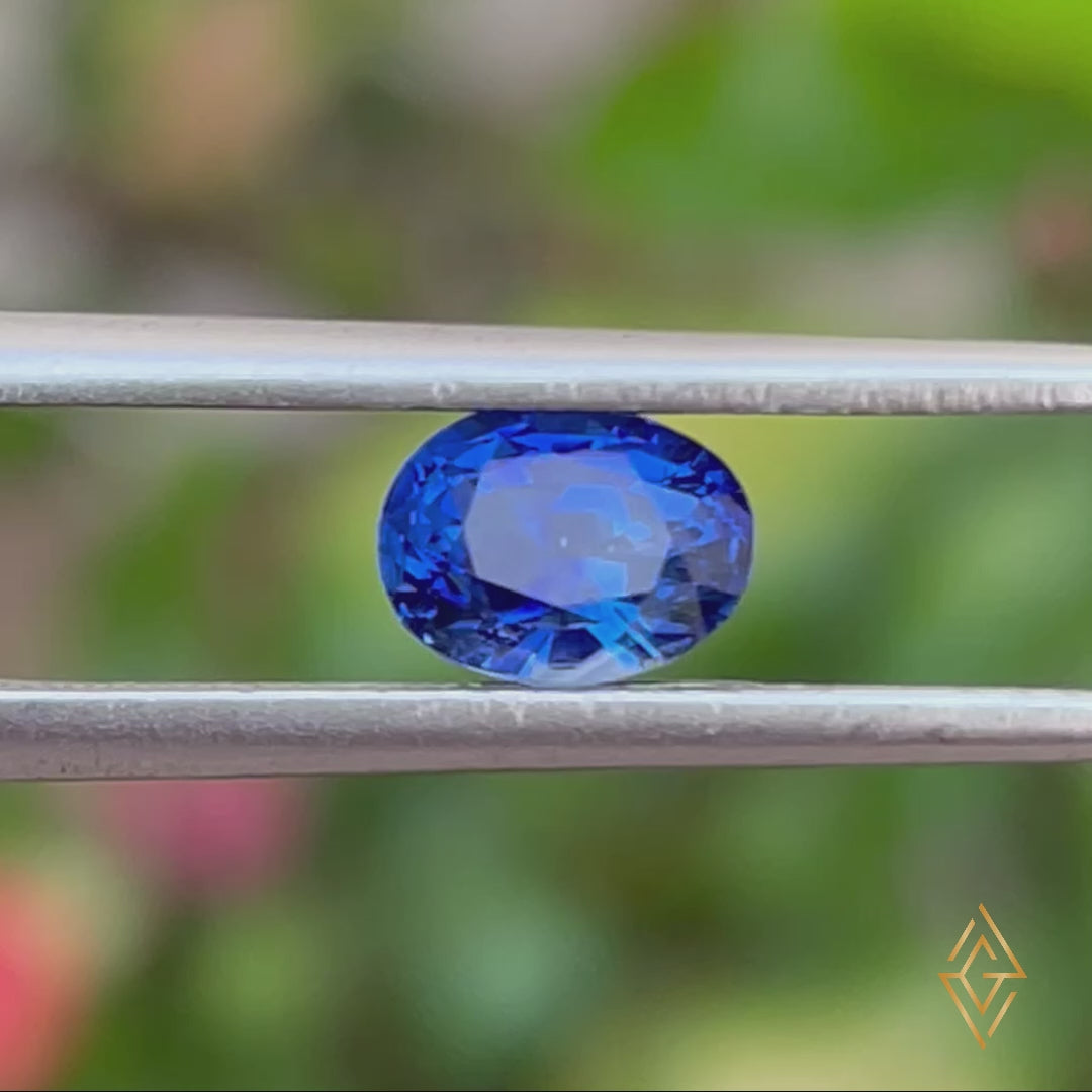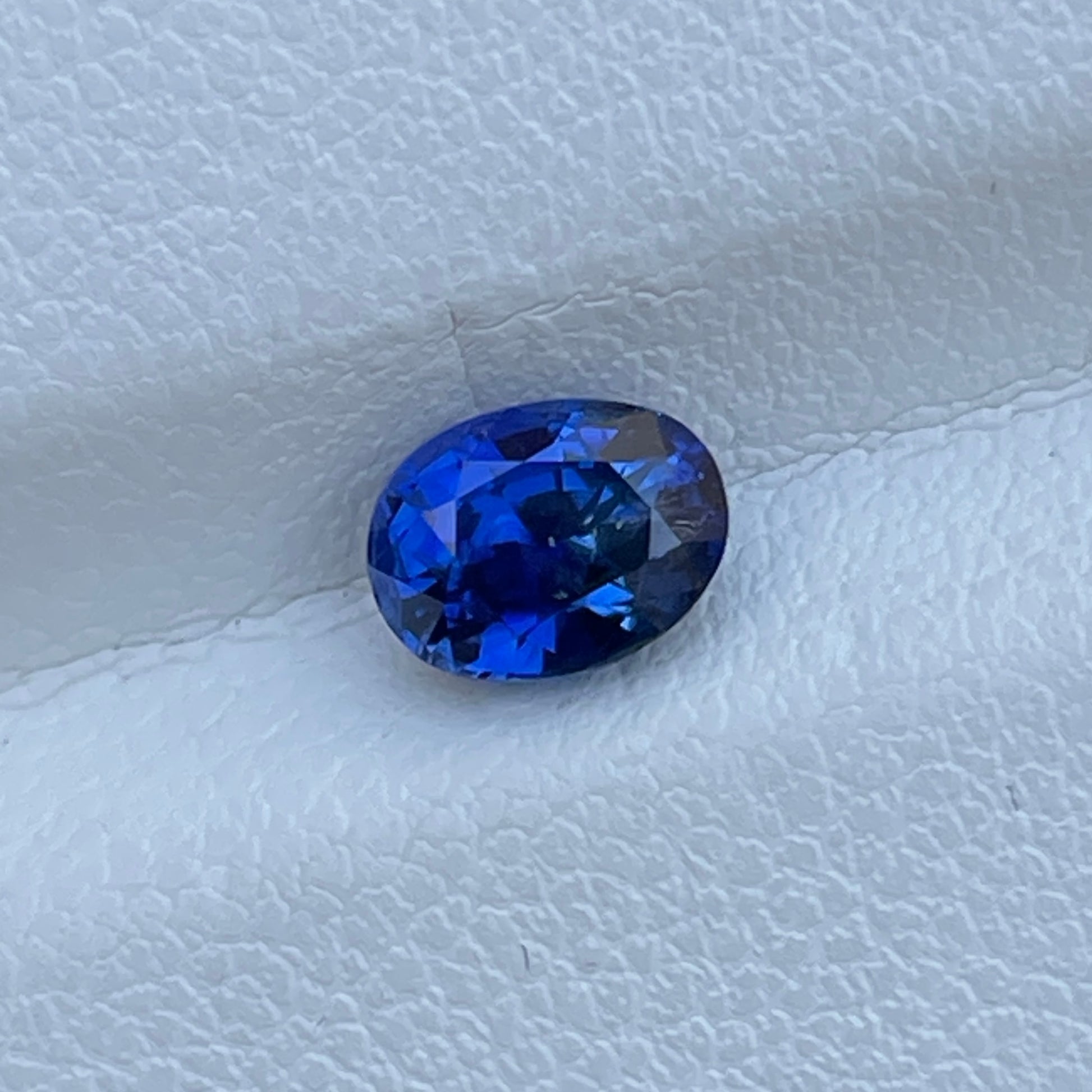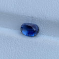 A charming oval-cut blue sapphire, featuring a vivid deep-blue hue with sparkling brilliance and slight inclusions.