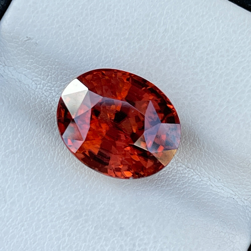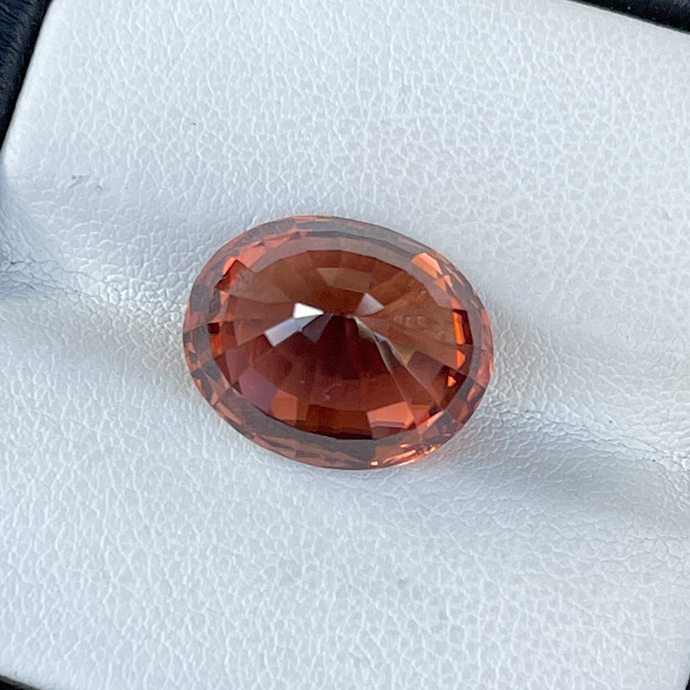 A magnificent oval-cut Orange Zircon from Sri Lanka, showcasing a fiery hue and exceptional brilliance. This unheated gem displays outstanding VVS clarity and a sparkling luster that radiates warmth and sophistication. Its impressive size and natural vibrance make it an exquisite centerpiece for high-end jewelry or a prized addition to any fine gem collection.