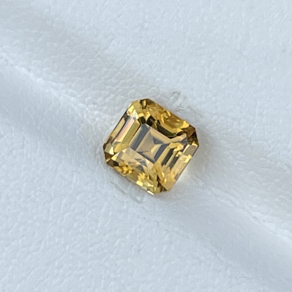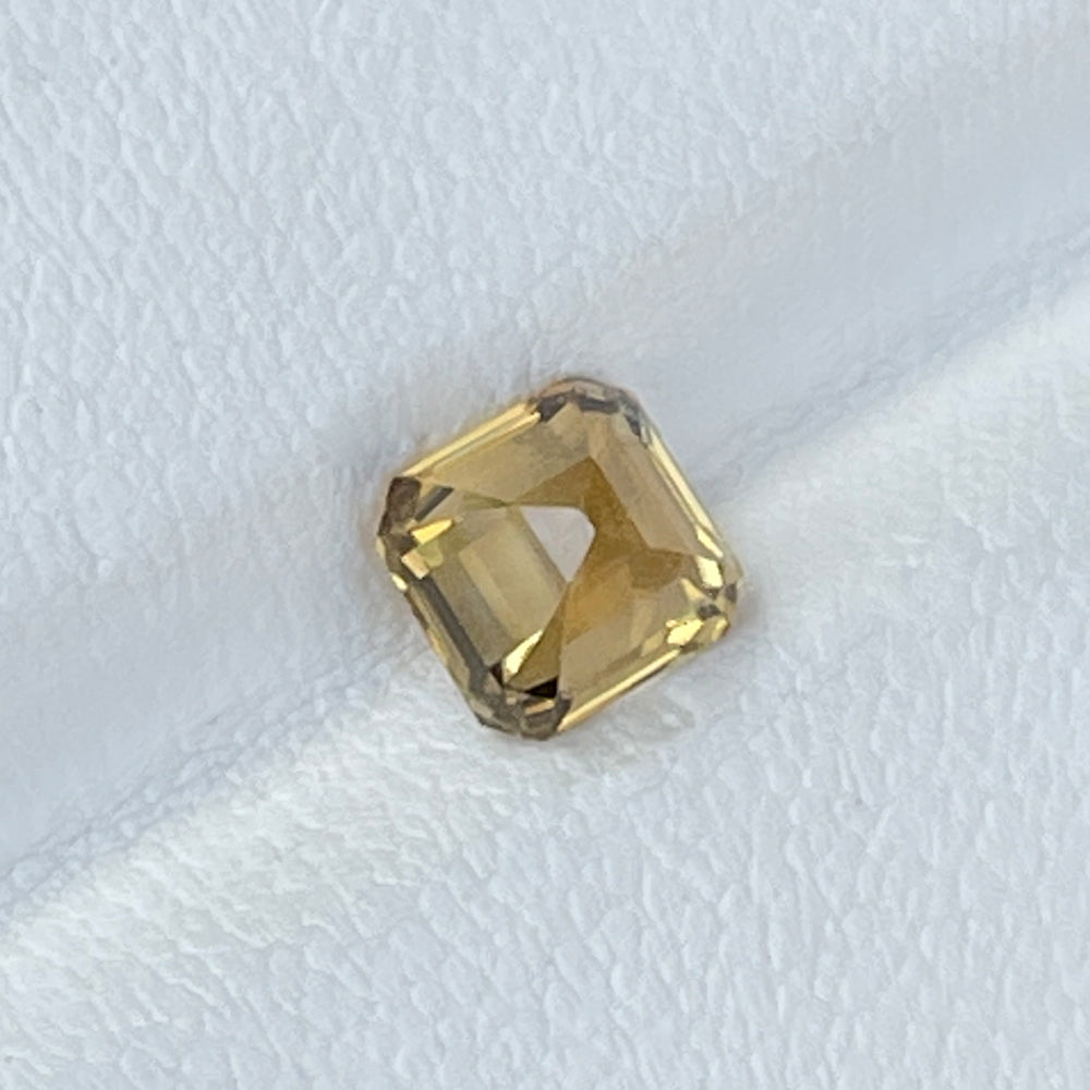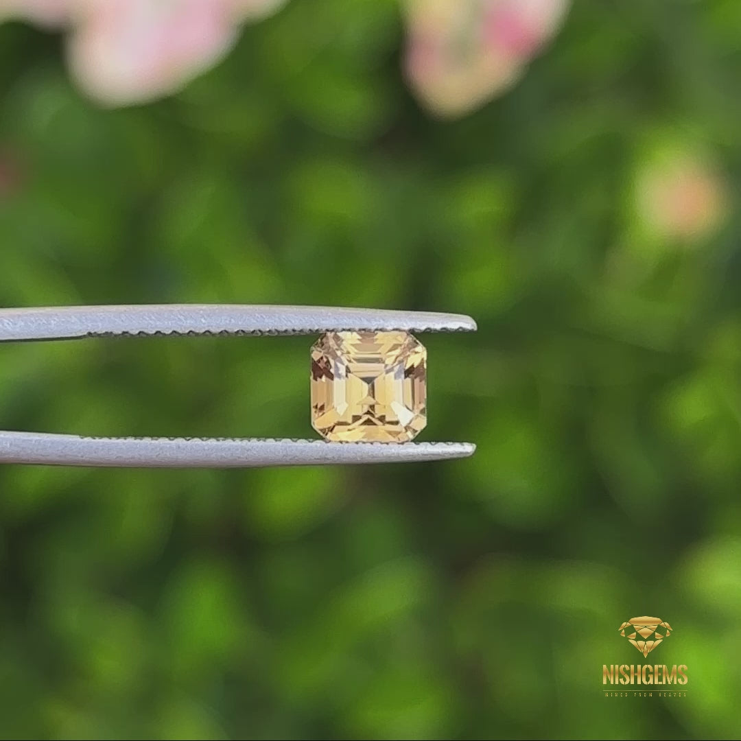 A stunning Asscher-cut Yellow Chrysoberyl from Sri Lanka, known for its sparkling luster, vibrant color, and exceptional clarity. This gem remains in its pure, unheated state, showcasing its natural brilliance.