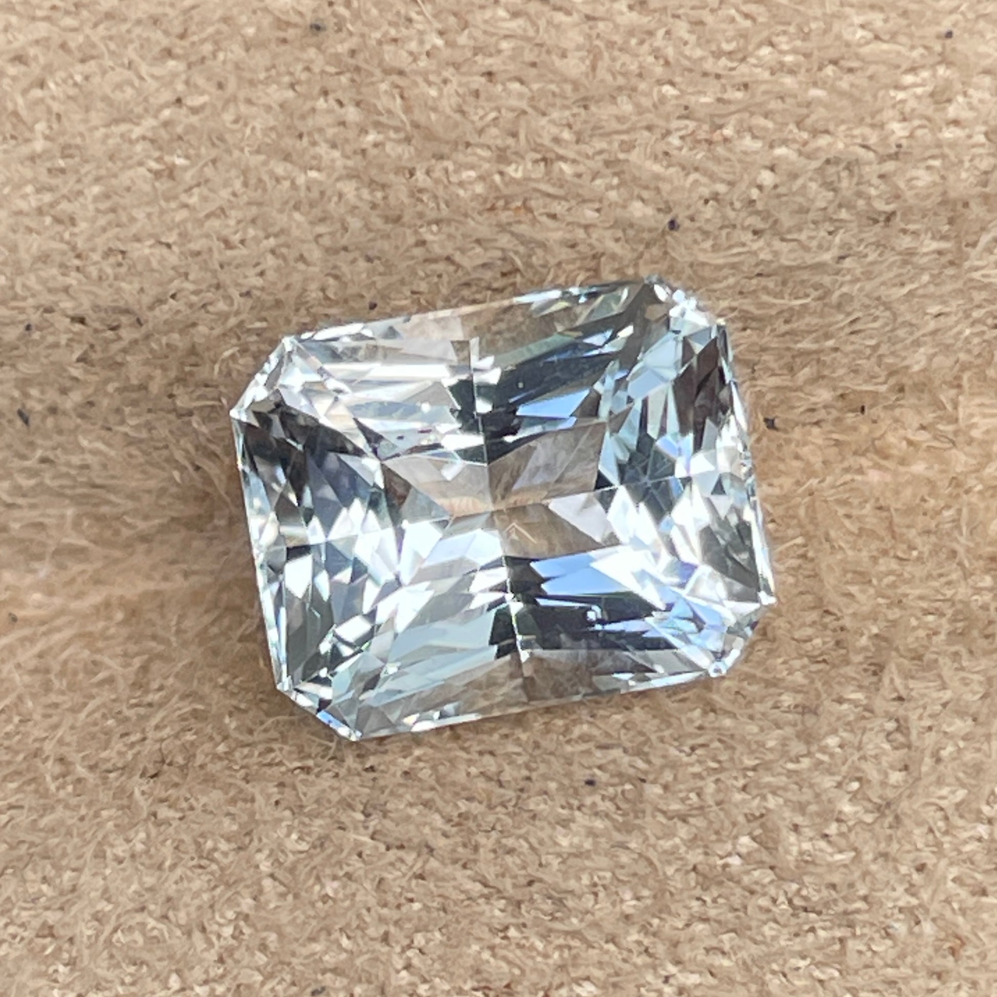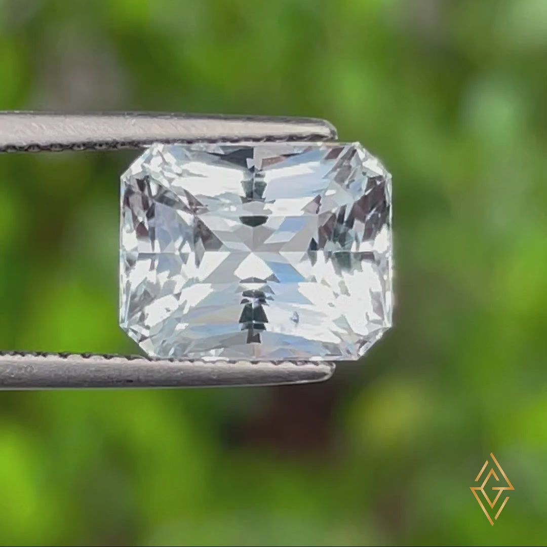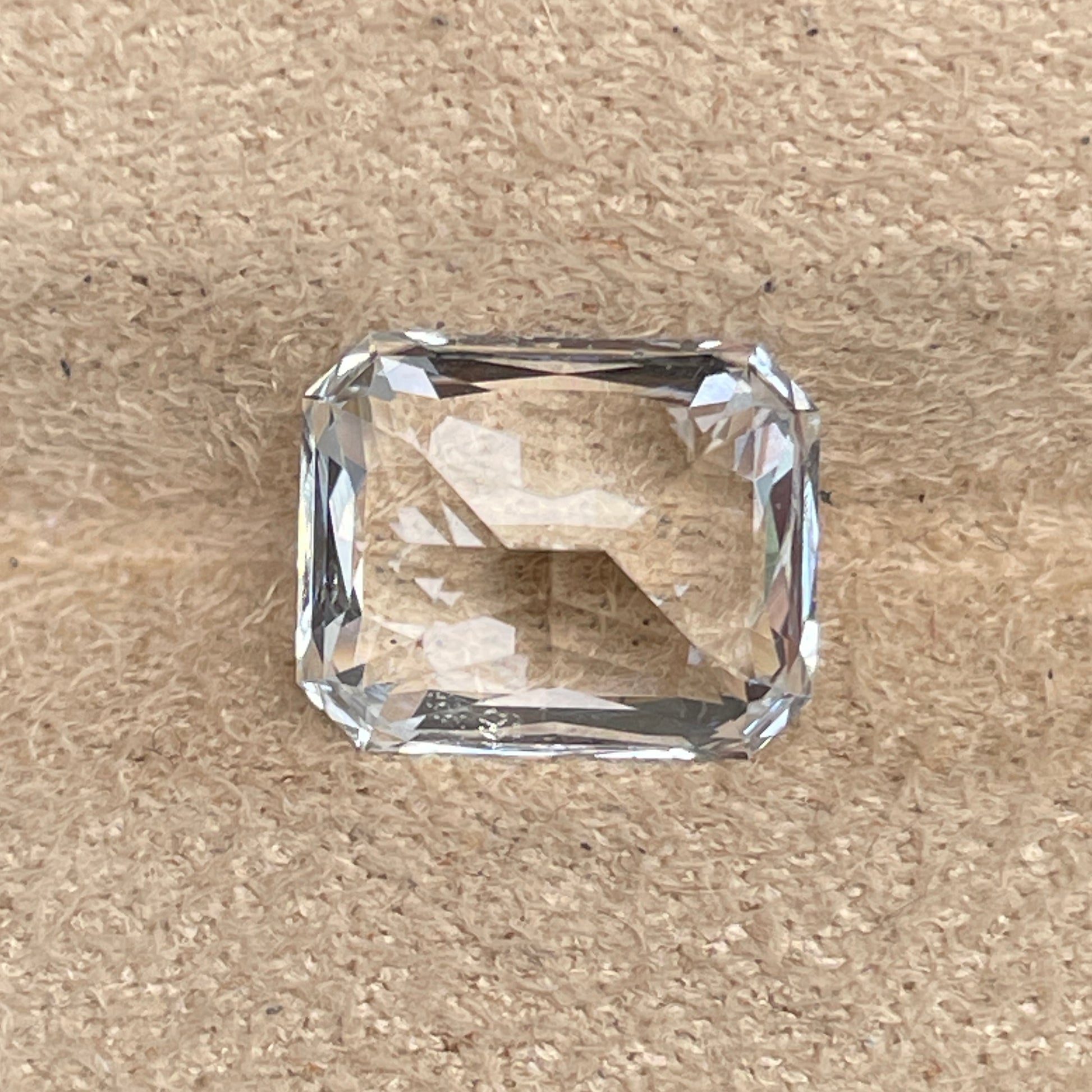 A radiant-cut White Topaz from Sri Lanka, showcasing a bright, crystal-clear hue and brilliant sparkle. With its fine VS clarity and captivating luster, this gem exudes timeless elegance and versatility.