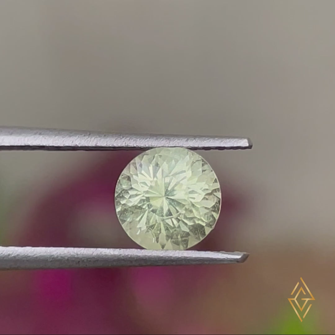 A captivating round-cut Yellow Chrysoberyl from Madagascar, featuring a vibrant yellow color and good clarity. This gem remains untreated, showcasing its natural beauty and brilliance.
